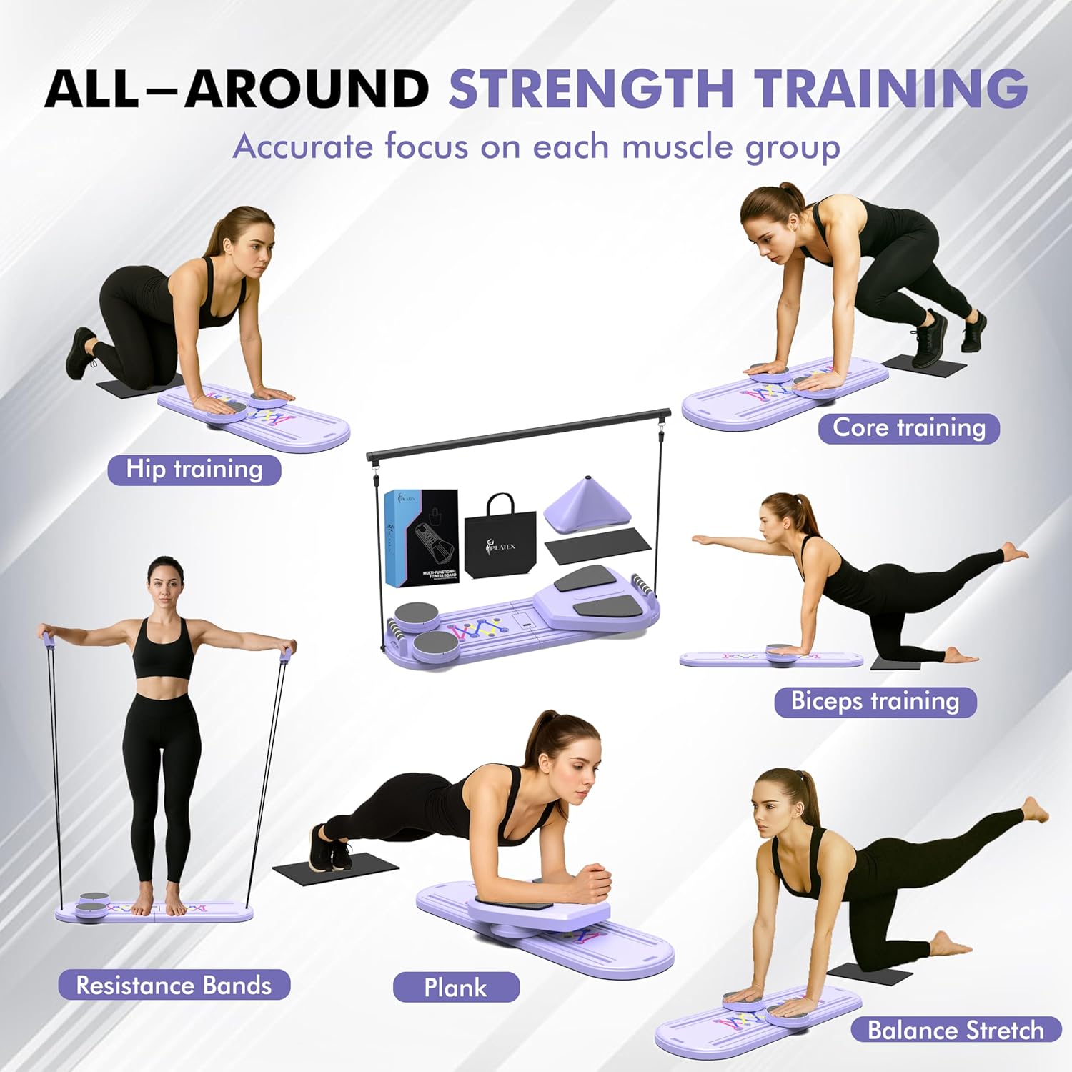Multifunctional Training Equipment: Equipped with a resistance bands set, ergonomic handles, slide board, plank board and a thick knee pad, this portable Pilates reformer is a complete strength training equipment, that allows you to train your core and abs, or work on your arms, balance, or mobility training for a full-body workout.