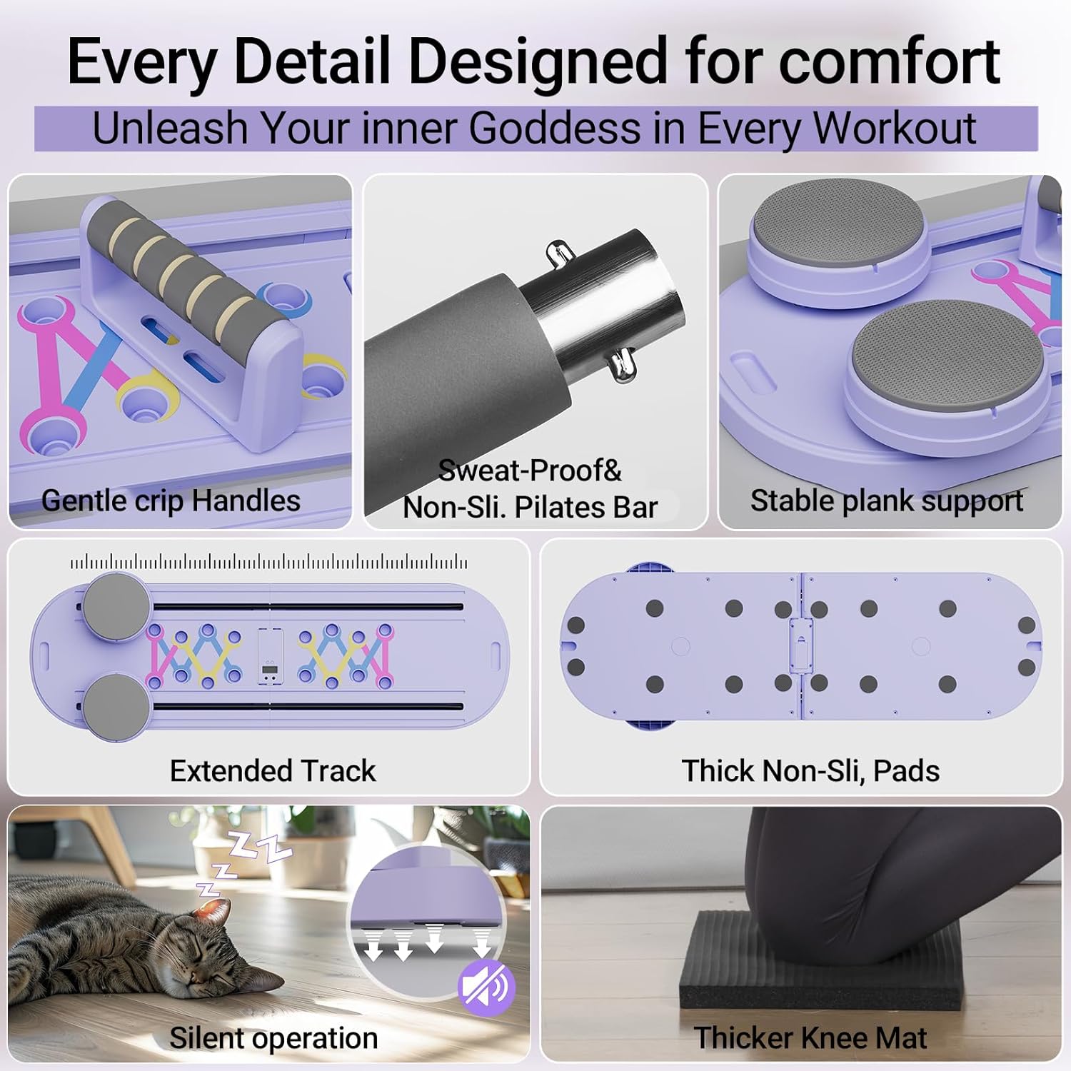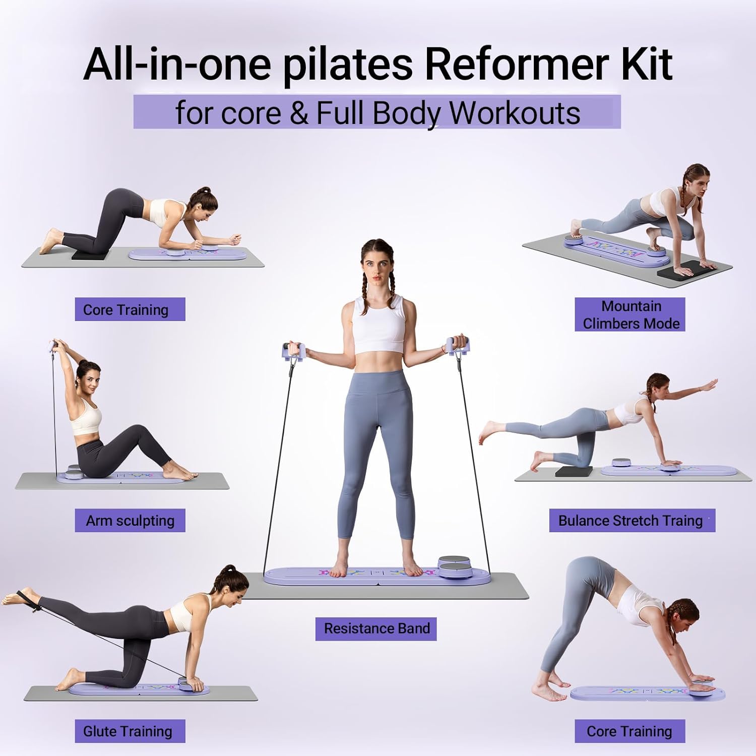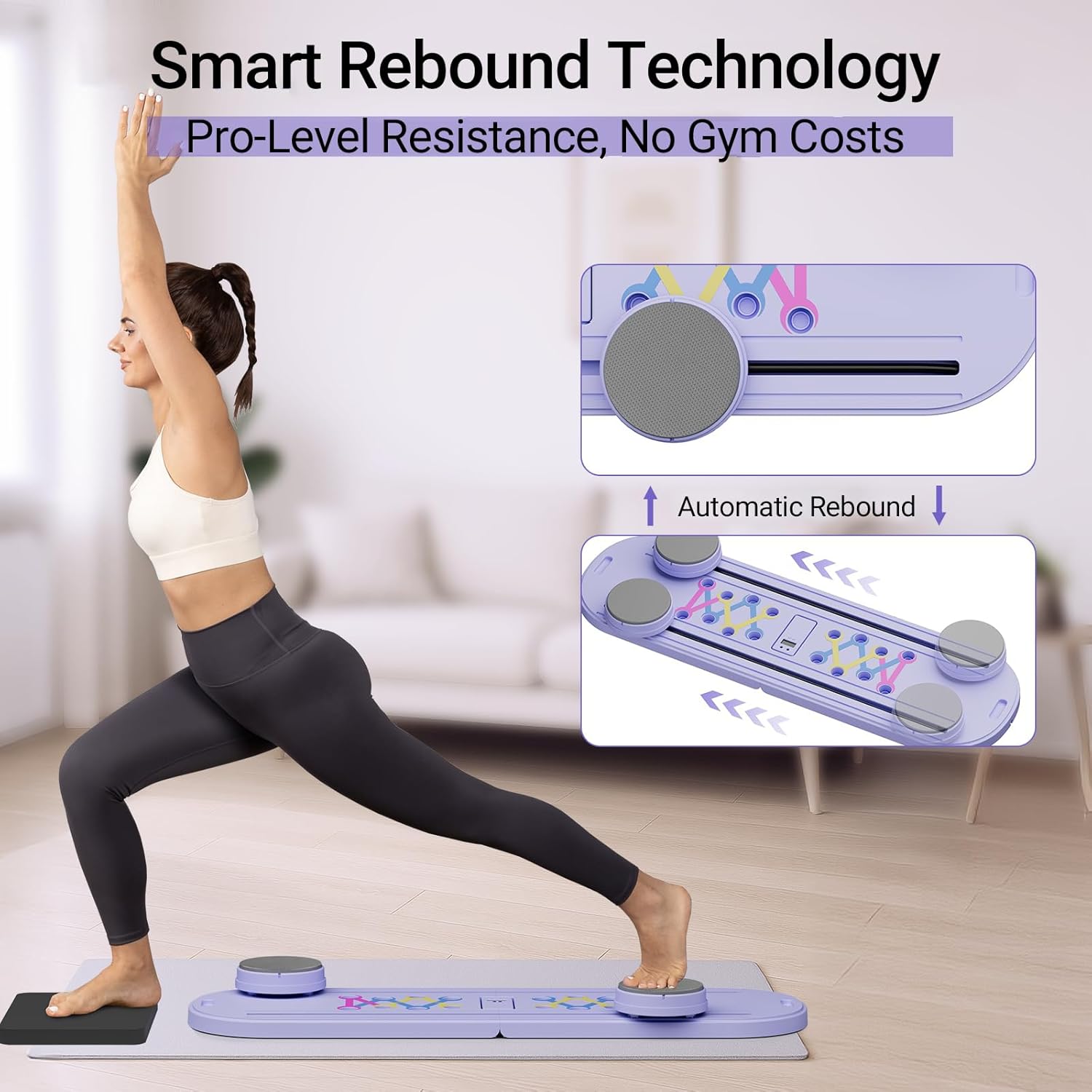 【Easy to Use & High Weight Capacity Pilates Reformer】It’s easy to handle with powerful rebound force. board supports planks,side planks, advanced dynamic planks,crunches,knee tucks, bicep curls,squats,goblet squats,lunges,calf raises,wide-grip push-ups,close-grip push-ups, tricep dips, and more. with a weight capacity of up to 300 lbs.