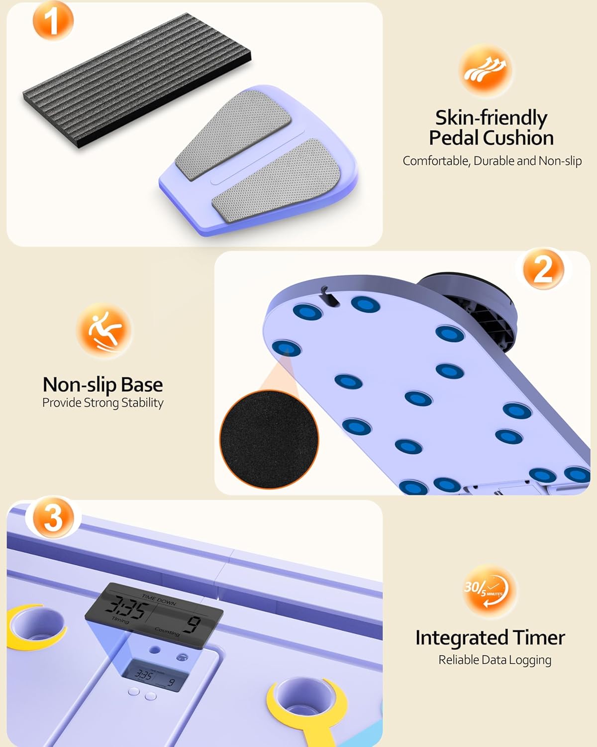 【Safe Intelligent Pilates Board】Resistance bands to provide automatic rebound when abs curling.Kneeling pads provide extra comfort and support.The flat board design more safe and stability than traditional AB roller.Counting and timer function can record help users track and evaluate exercise growth.Customize your workouts,build strength,and achieve your dream body.
