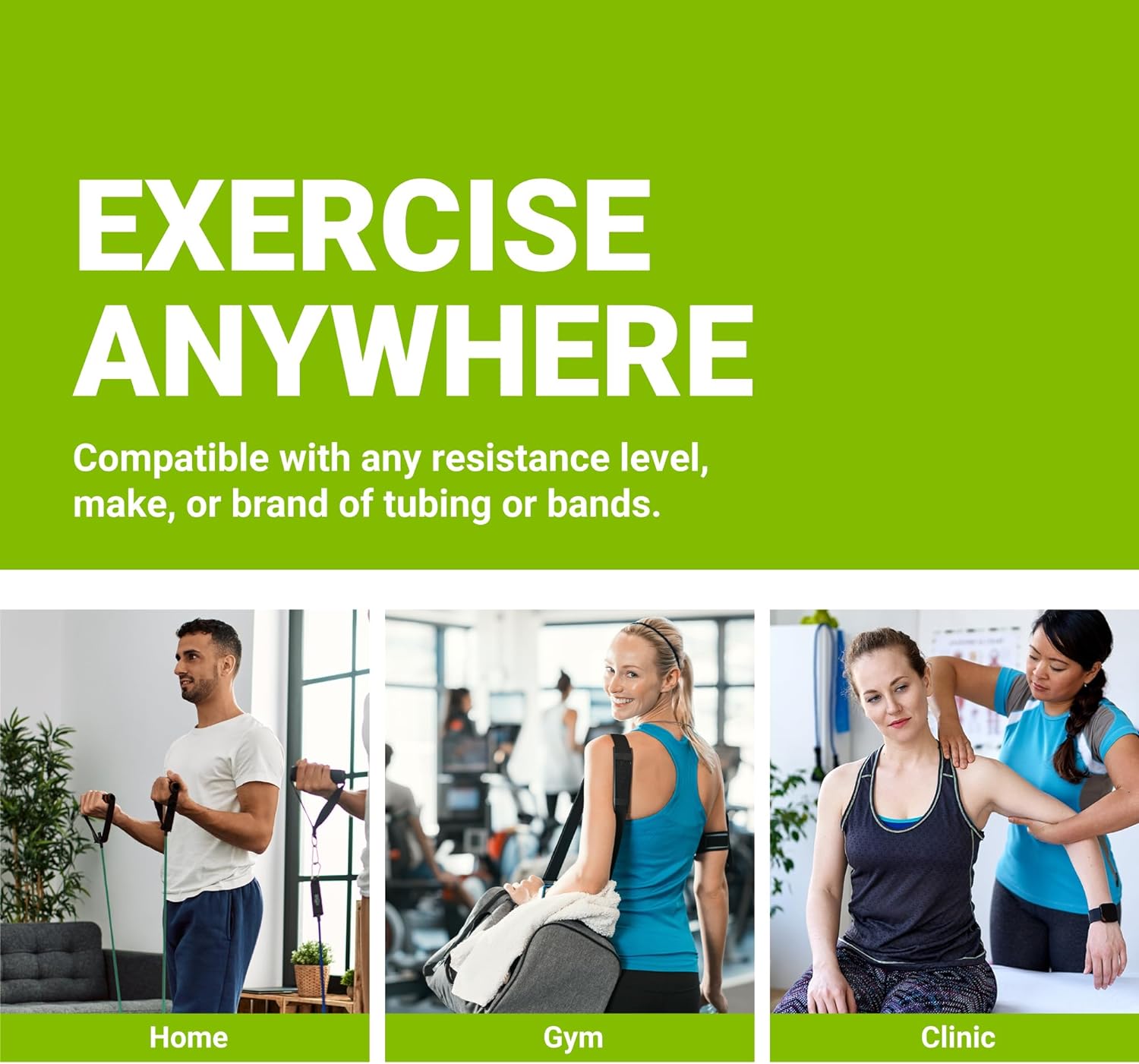 How to Use. The included equipment can be used with Web Slide Exercise Rails or a standard door. To use with Exercise Rails, simply attach your ExerBand or Shoulder Pulley to the rail by inserting its Web Anchor Strap into one of the five Anchor Points. You can then grab your ExerBand Resistance Tube or Shoulder Pulley by the handles and get moving. The Extremity Strap can be easily attached to the ankle, thigh, or wrist for lower and upper extremity exercises.