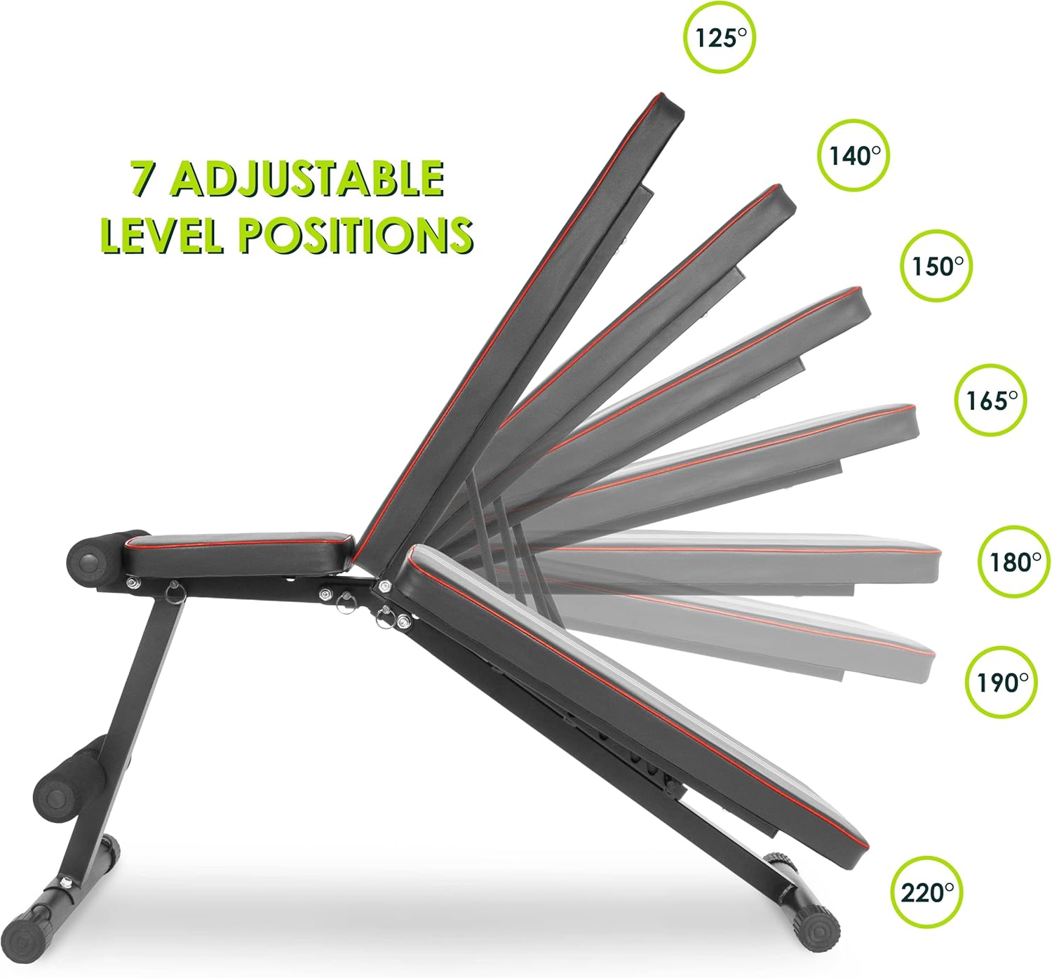 ADJUSTABLE BENCH – With up to 7 incline variations to choose from, the foldable workout weight bench is the ideal fitness equipment for all your workout needs at home or in the gym. Work your abs, upper and lower body with the multipurpose workout utility bench!