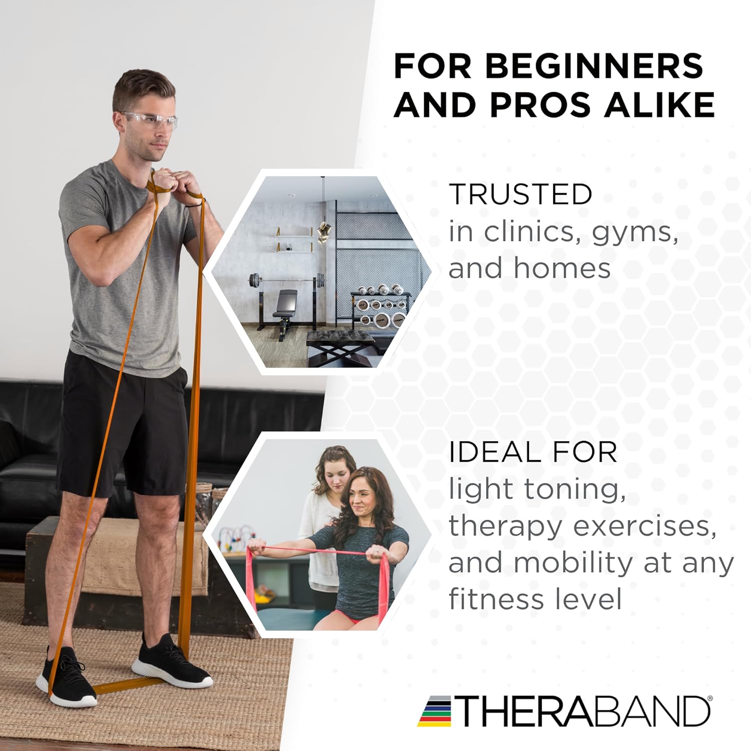 THERABAND Resistance Bands, Two 25 Yard Rolls Professional Latex Elastic Band For Upper Body, Lower Body, & Core Exercise, Physical Therapy, Pilates, At-Home Workouts, & Rehab, Gold, Max, Level 8