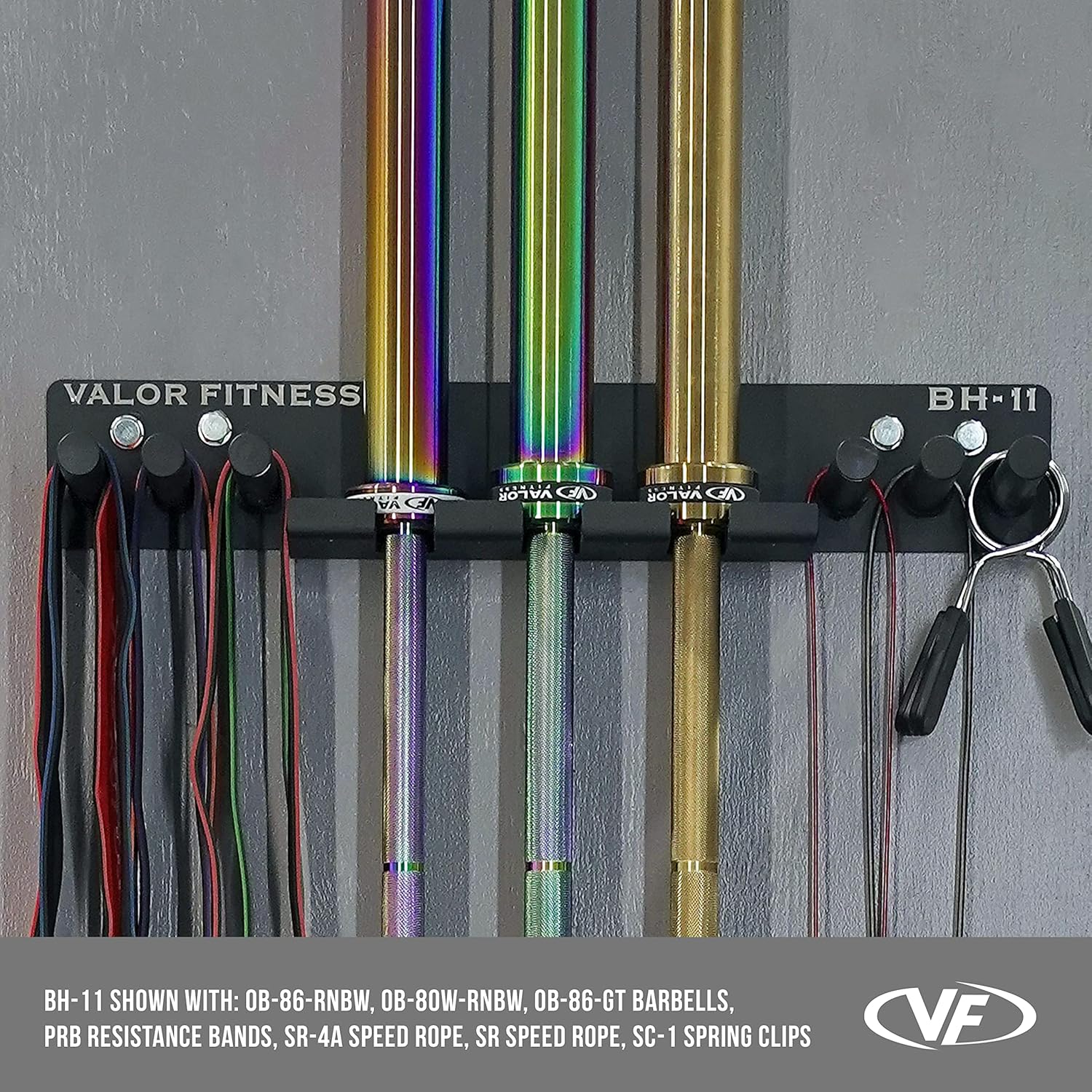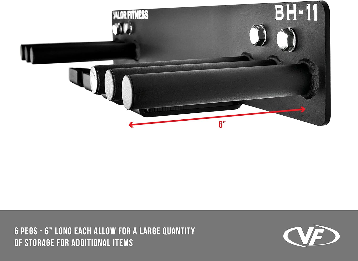 Valor Fitness Wall Mount Gym Storage Rack Organizer 6 Pegs – Workout Equipment Barbell Resistance Bands Jump Ropes Chains Weight Belt Hanger Home Gym – Max Weight 330 lbs.