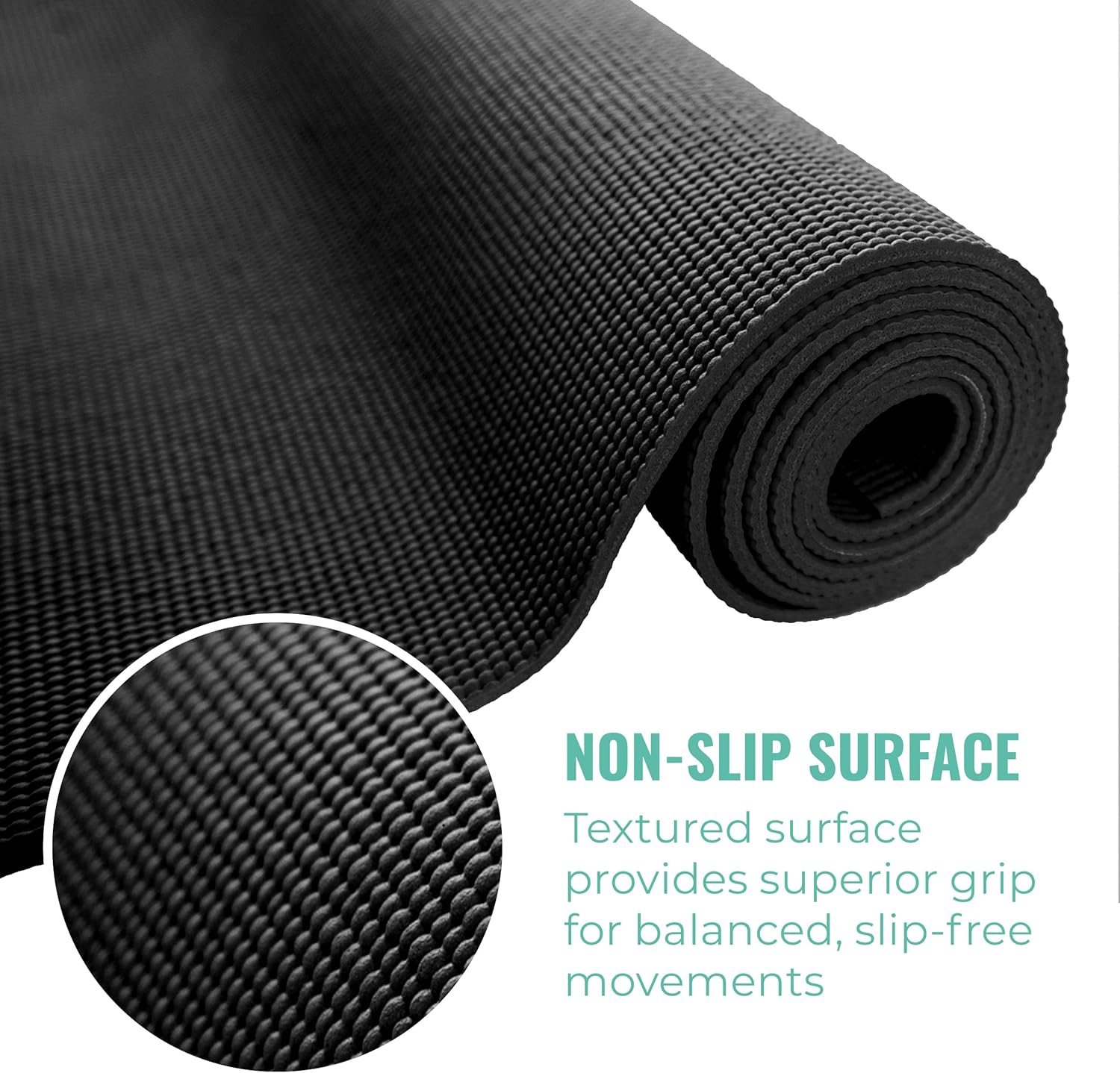 Non-Slip Surface: The textured surface of the fitness mat provides great traction to offer stable, balanced footing when changing poses or maintaining them for extended periods