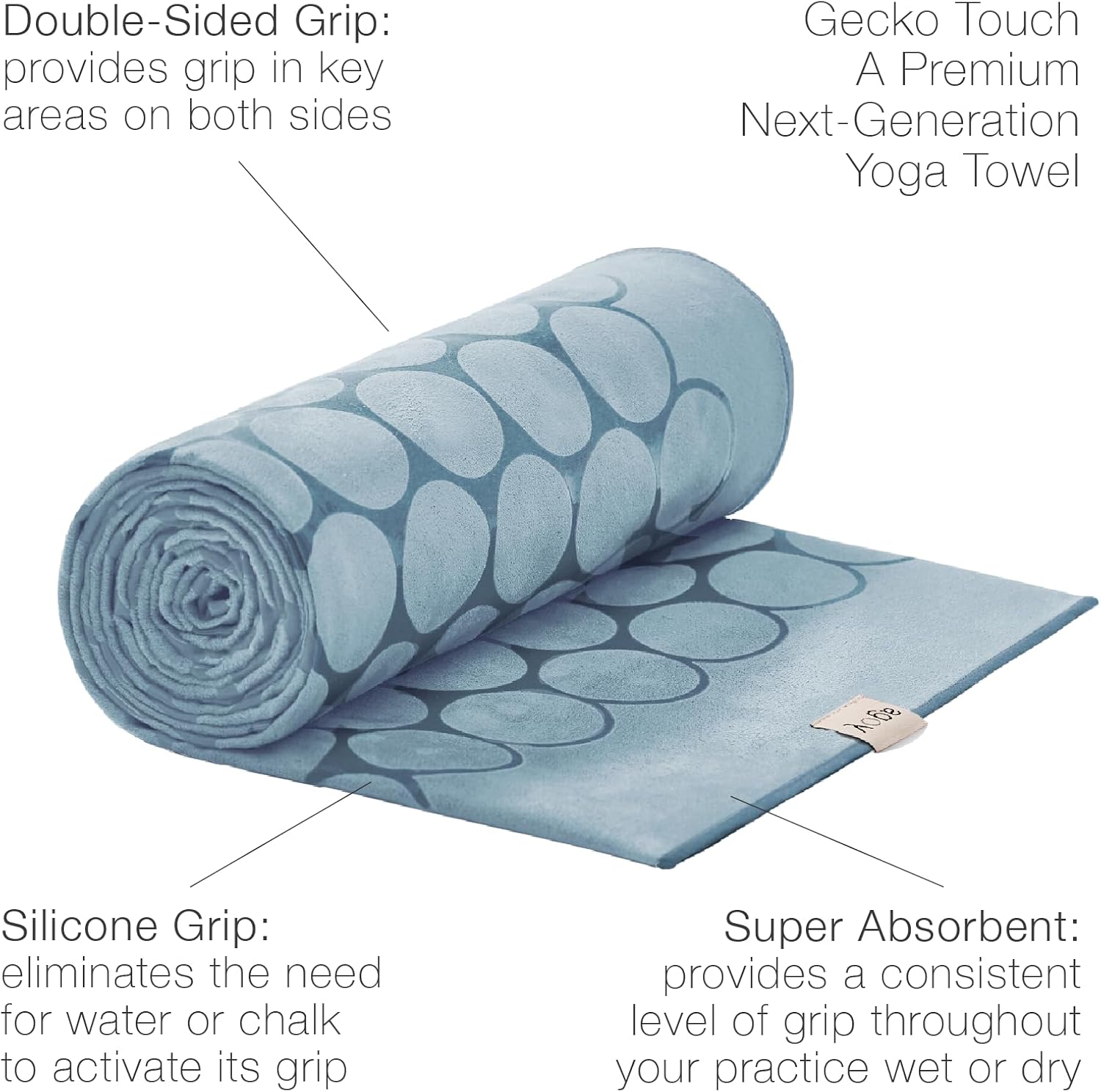agoy Gecko Touch – Next-Gen Microfiber Yoga Towel – Double-Sided Silicone Non-Slip Grip – Ideal for Hot Yoga – Ultra Absorbent, Easy to Wash, Travel-Friendly – 30% Recycled Material – Free Wet Bag