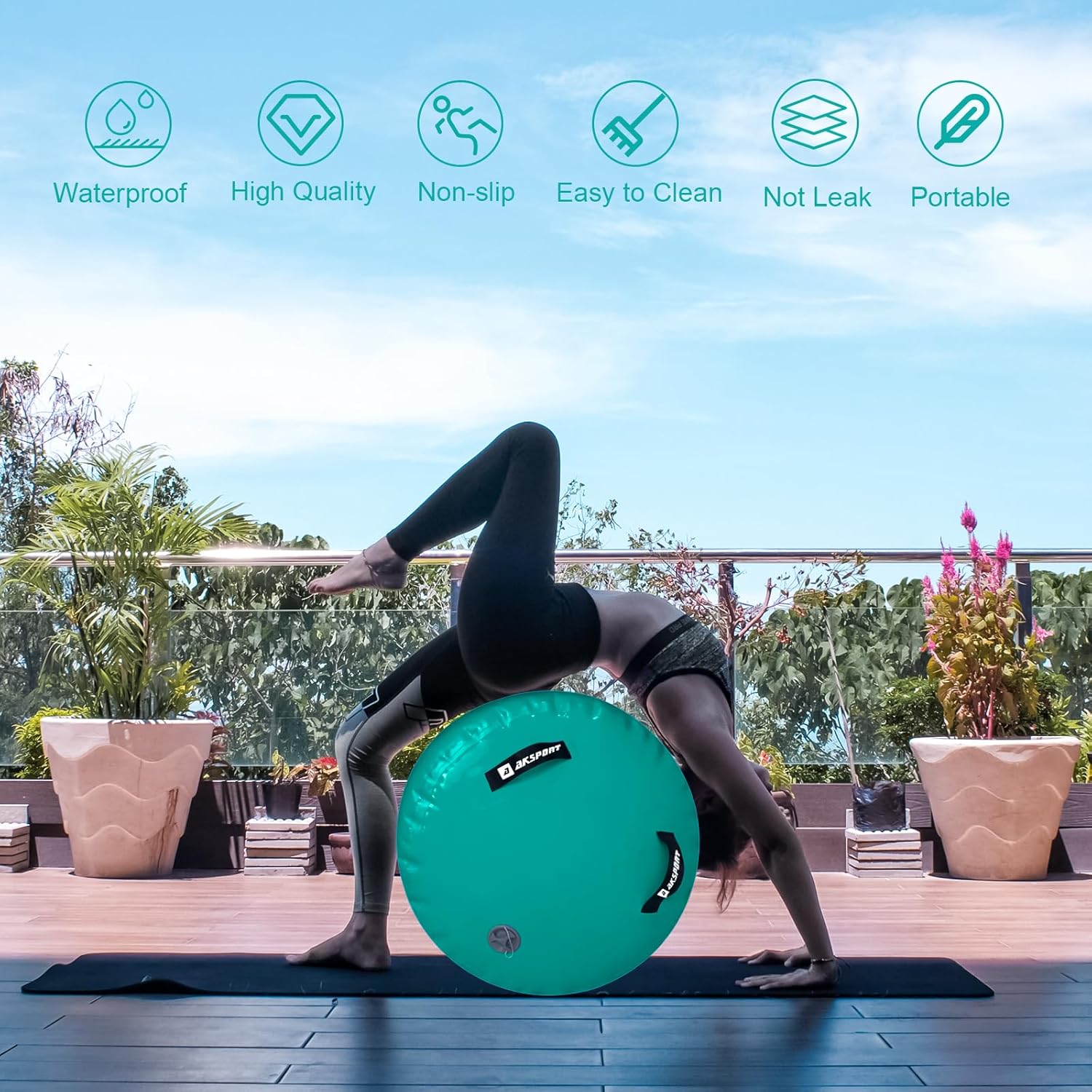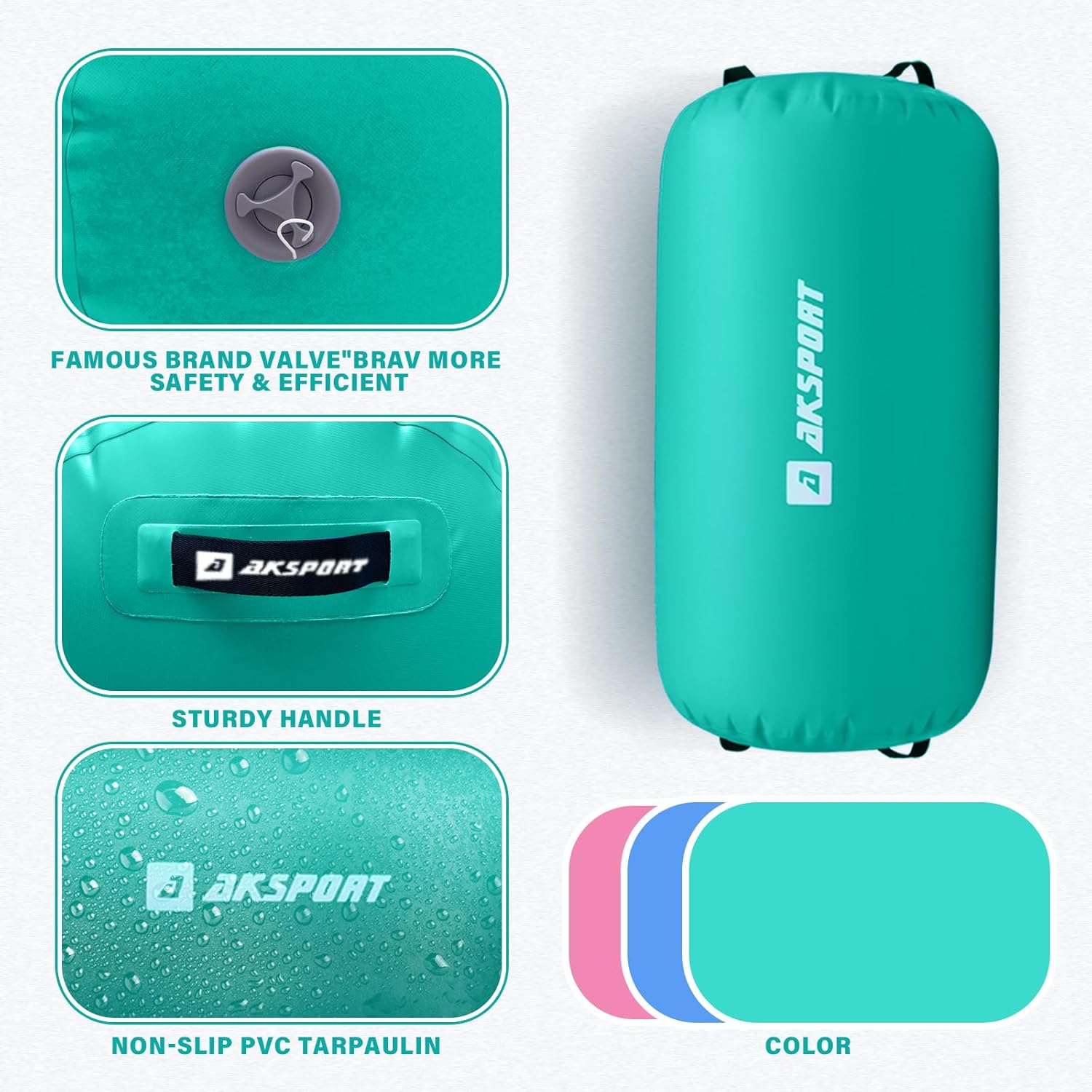 AKSPORT is produced with a commercial grade drop stitched 1000-denier double-wall fabric resulting in a product that is durable,density,sturdy and bounce while reducing vibration.
