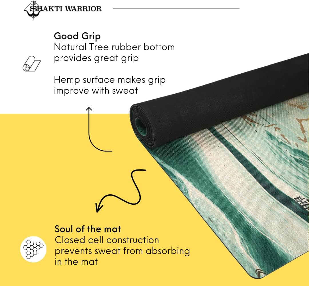 Shakti Warrior Hemp Mats Performance Grip that improves as you sweat Dense Cushioning providing support for joints Excellent Durability Sustainable The hemp surfaces increases grip when wet