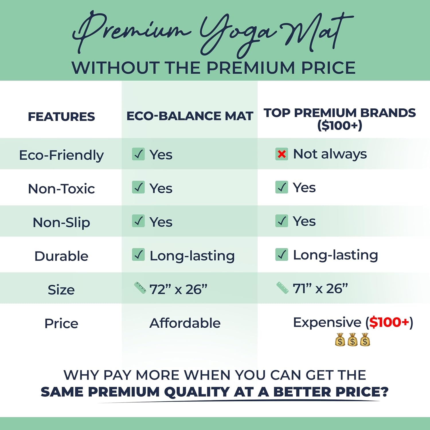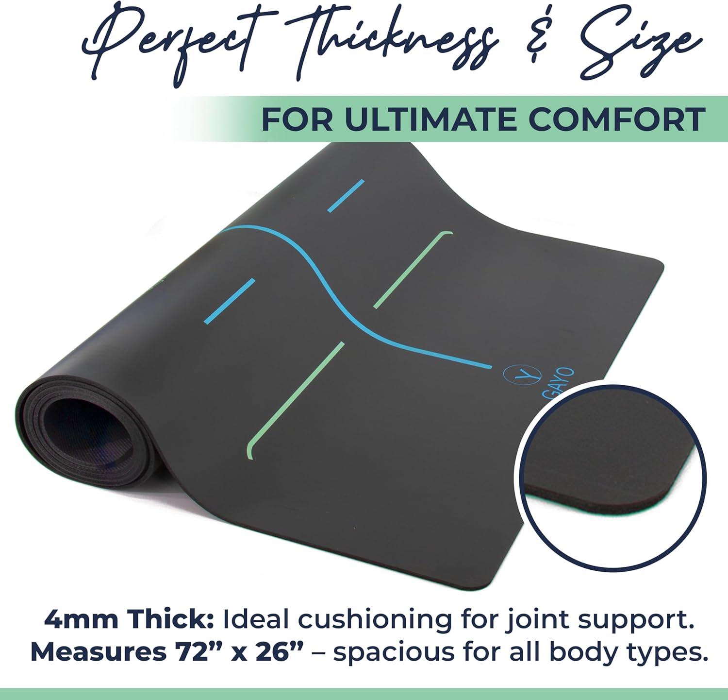 Eco Balance Yoga Mat with Carry Strap – Superior Grip, Non-Slip, Durable & Lightweight, Eco-friendly Natural Rubber Mat with Alignment Lines, 4mm Thick mat for Ultimate Comfort