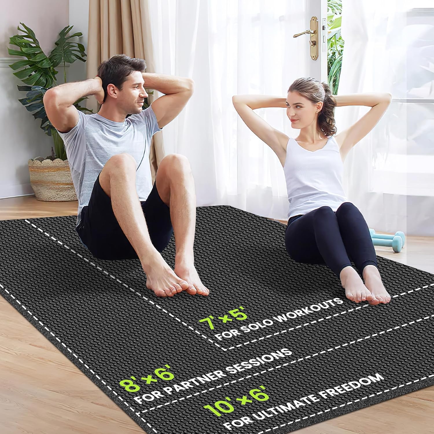 Extra Large Exercise Mat, 7’x5’/8’x6’/10’x6’x8mm (1/3 inch), Non-Slip, Ultra Durable, Thick Large Workout Mat for Home Workouts, Yoga Mats for Fitness, High-Density Exercise Mat, Shoes-Friendly