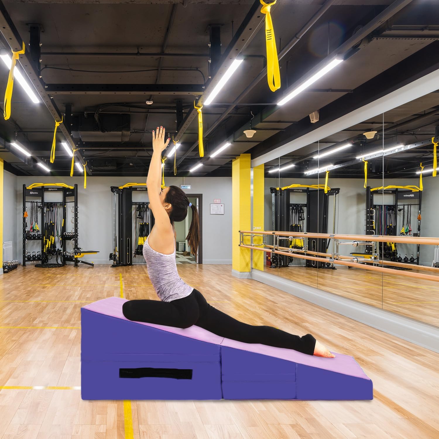 This gymnastics mat is versatile for various sports, folding into a compact cube that doubles as a small bench. Its high-density EPE foam offers strong yet comfortable support, while the PVC surface prevents sticking during workouts. Lightweight and portable, it’s perfect for indoor and outdoor activities like Pilates, yoga, and martial arts. The durable PU surface resists tearing and is easy to clean, safe for any floor type. Convenient handles and foldable design make it easy to transport, store, or adjust for advanced exercises.