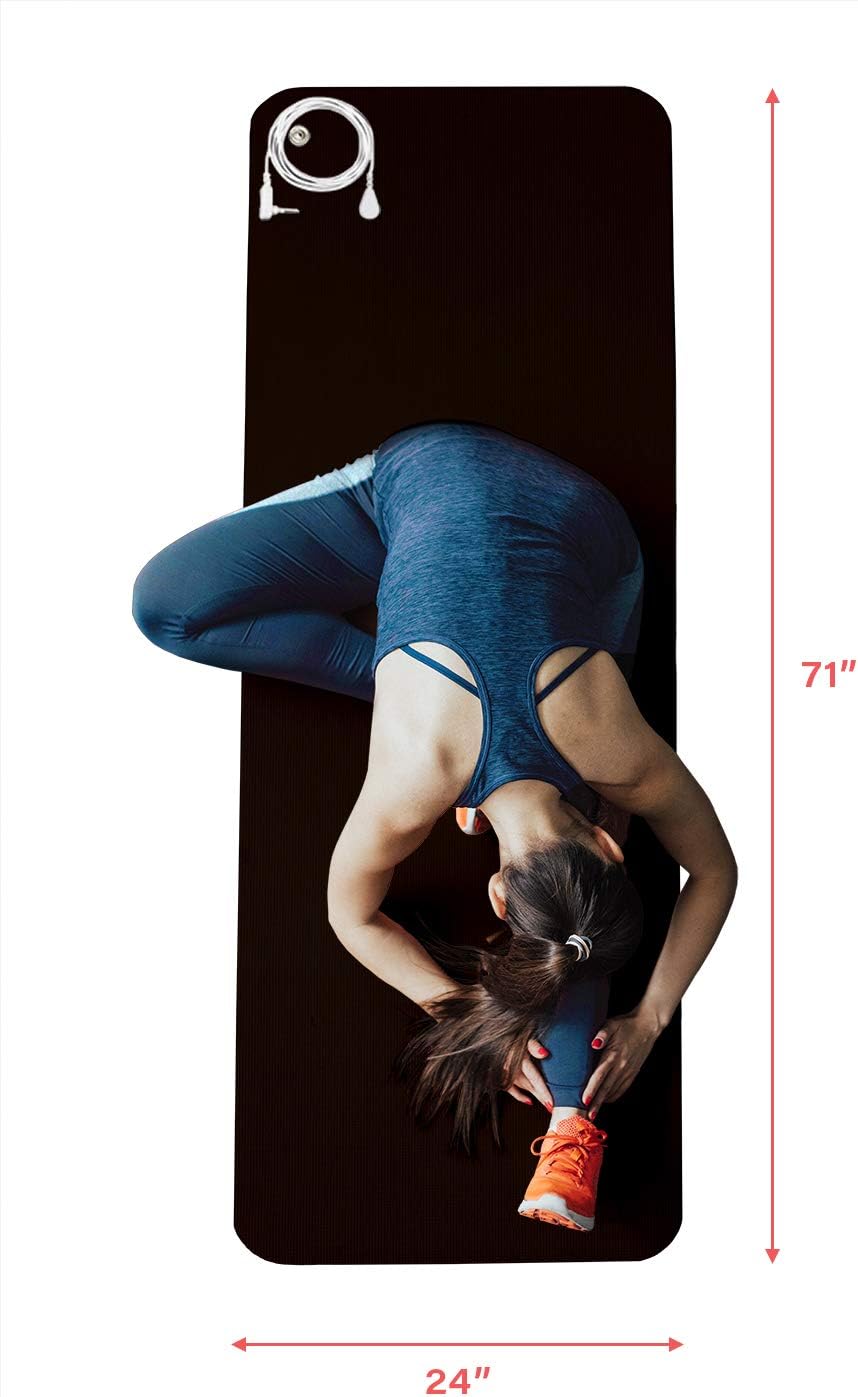 Extra Large Grounding Mat: Our Yoga Mat is made of durable, high quality SBR foam which is topped by a comfortable non slip conductive carbon. It is PVC-free, Latex-free, Odorless and Eco-friendly. It is also anti-skid. The mat measures 71 inches long by 24 inches wide and 1/4″ thick, which is the largest mat on the market and comes with a 15 foot grounding wire to connect to a grounded electrical outlet.