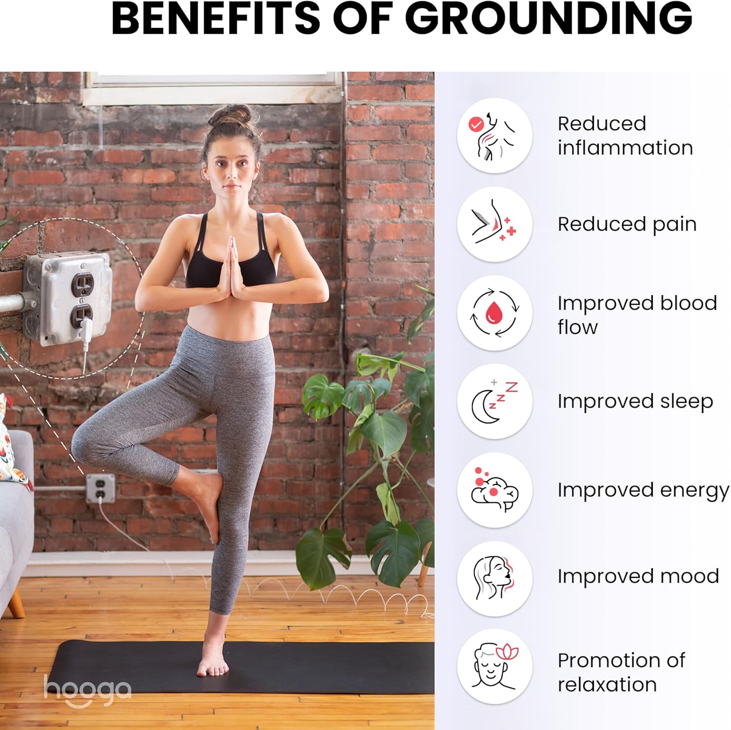 Stay Grounded Indoors: Just plug the snap-on cord into the ground socket of a wall electrical outlet. This will allow the slight negative electrical charge from the earth to flow through the cord and onto the conductive leather surface of the Hooga Mat so that you can enjoy the benefits of grounding!