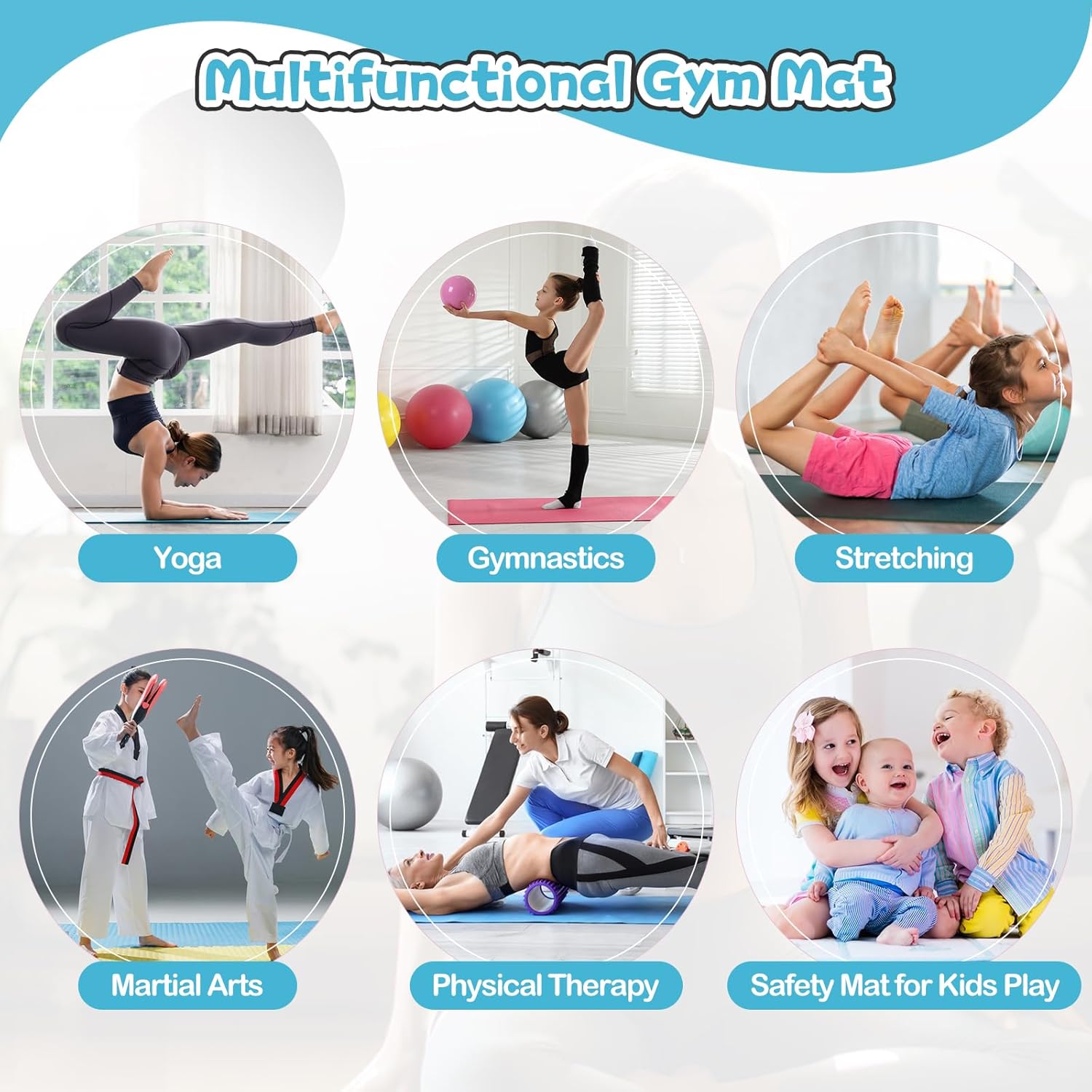 Multi-Purpose Gymnastics Mat: Measuring 10′ x 4′ x 2″ (L x W x H), this versatile gymnastics mat is not just limited to gymnastics, but also suitable for various activities such as yoga, stretching, martial art and physical therapy. In addition, the tumbler gymnastics mat can be used as a kids safety mat, providing a safe and cushioned surface for children to play and practice motor skills.