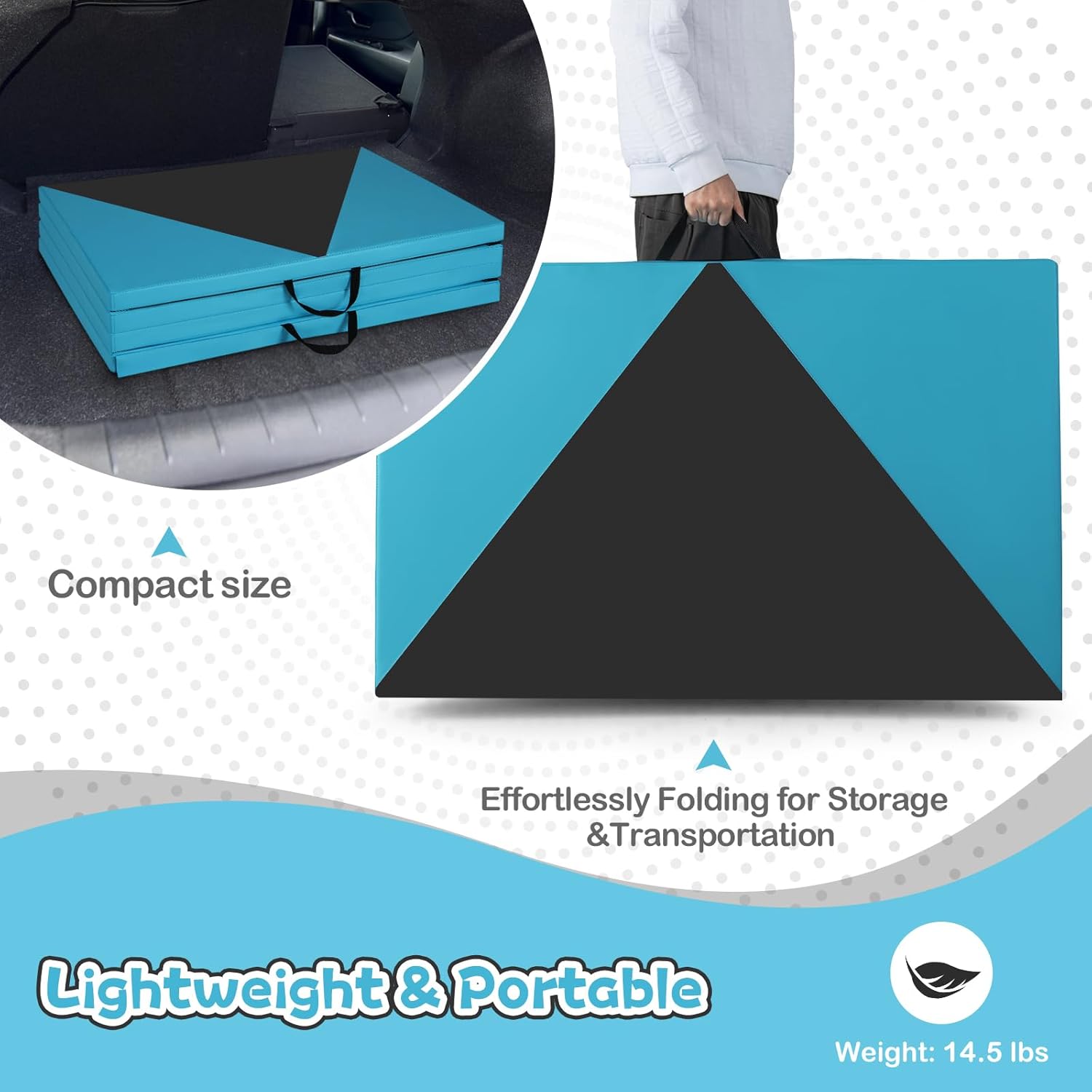 Space-Saving & Portable Design: Our gymnastics mat features a compact 4-panel folding design that saves plenty space when not in use. And the convenient handles allow for easy transportation, enabling you to take it with you wherever you go, whether it’s to the gym or a martial arts class.