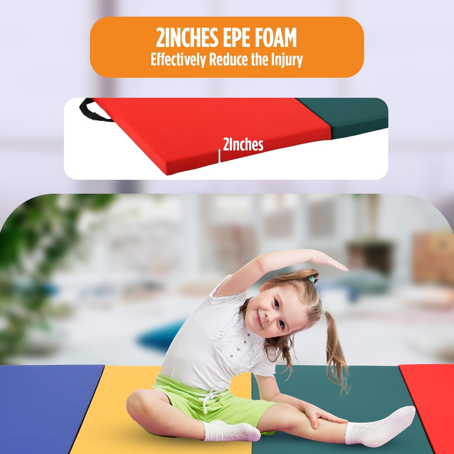 DURABLE GYMNASTICS MAT:The folding gymnastics mat made of 1.6” thick EPE, High-density EPE provides a comfortable experience, the gymnastics mat is durable but soft.Gymnastics mat gymnastic tumbling mat.