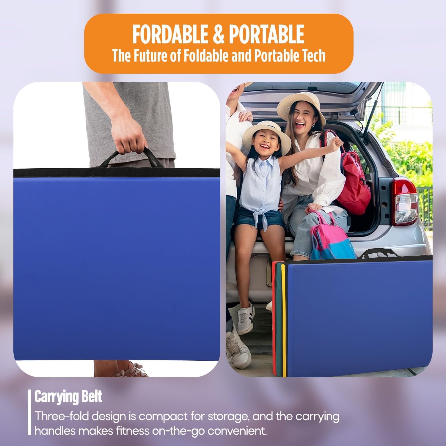 LIGHTWEIGHT&PORTABLE:The folding gymnastic mat Very lightweight,include sturdy tote,You can carry the gym mat anywhere you want to go, the exercise gym mat suitable for indoor sports, outdoor sports, camping dinners. foldable gymnastics mat exercise gym mat tumbling mat.