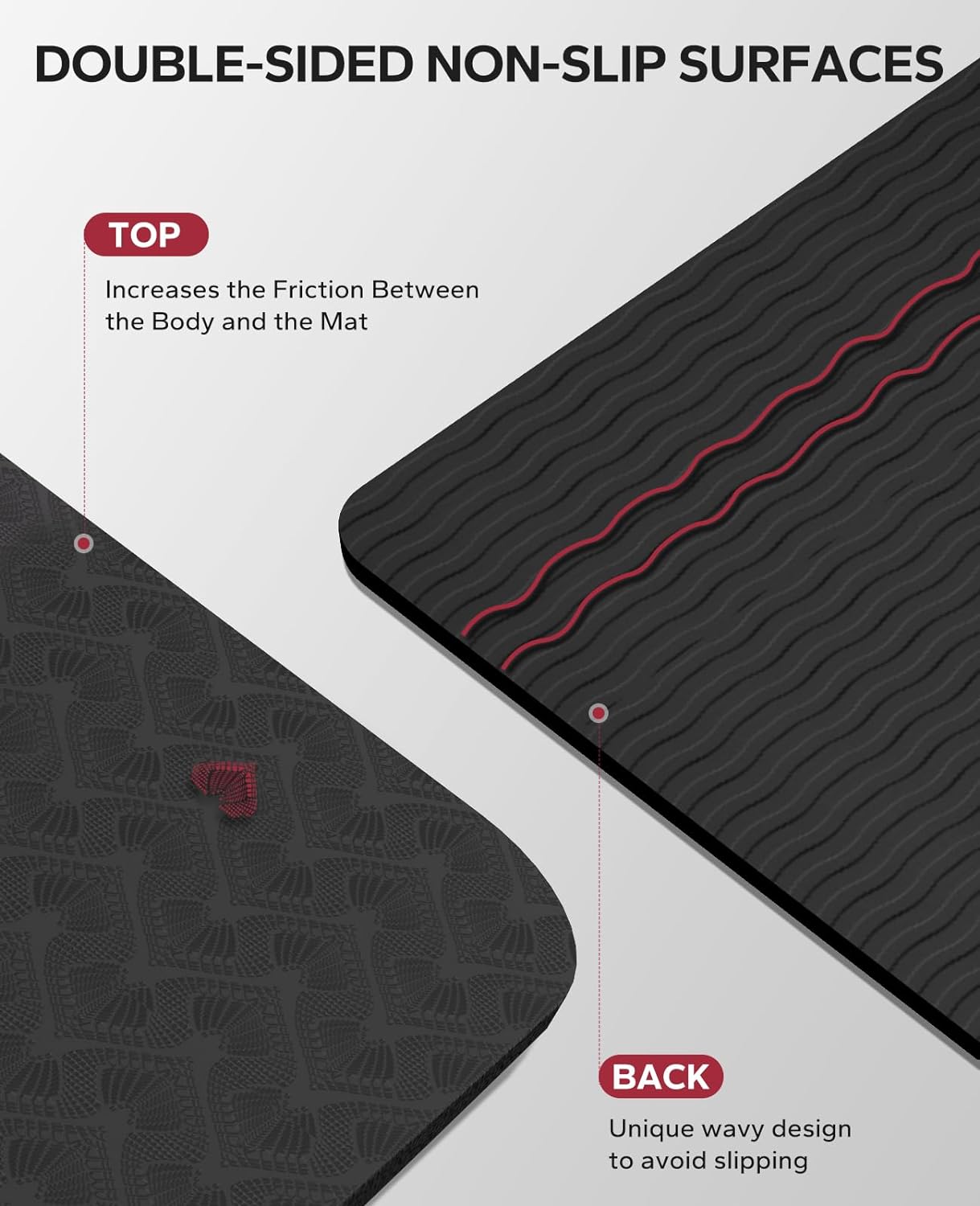 𝐃𝐨𝐮𝐛𝐥𝐞-𝐒𝐢𝐝𝐞𝐝 𝐍𝐨𝐧-𝐒𝐥𝐢𝐩 𝐃𝐞𝐬𝐢𝐠𝐧: Our extra wide yoga mat features a double-sided non-slip surface to keep you stable and secure during your practice without worrying about slipping or sliding. The unique wave pattern on the bottom enhances grip on a variety of surfaces, ensuring your mat stays securely in place even during the most challenging yoga poses. Note:Not for use on carpet
