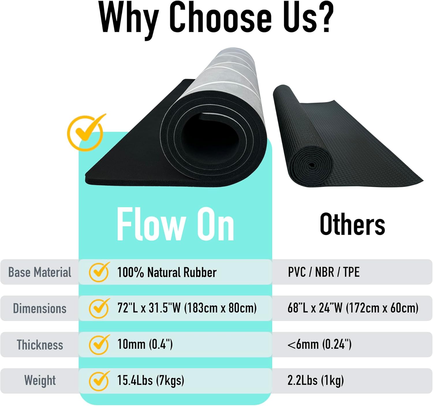 NEXT-LEVEL COMFORT & SUPPORT: Enjoy 10mm of ultra-thick, all-natural rubber cushioning for superior shock absorption and joint support. Ideal for yoga, pilates, stretching, and strength training.