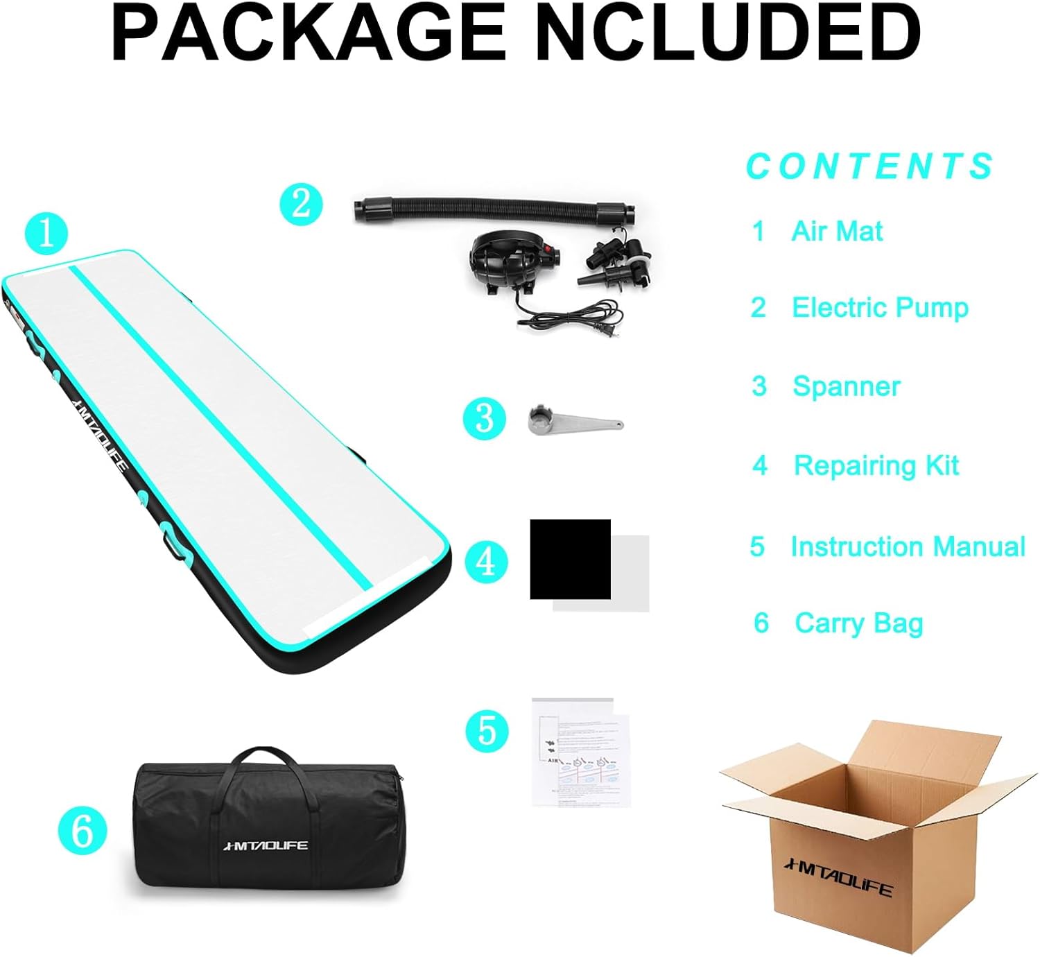 Complete Accessories : Air gymnastics mat include: 1 handbag/1 repair material/1 air pump/1 manual. Using the air pump can fill the gym mat in one minute, making your use more convenient. Handbag allows you to carry your gym mat wherever you want
