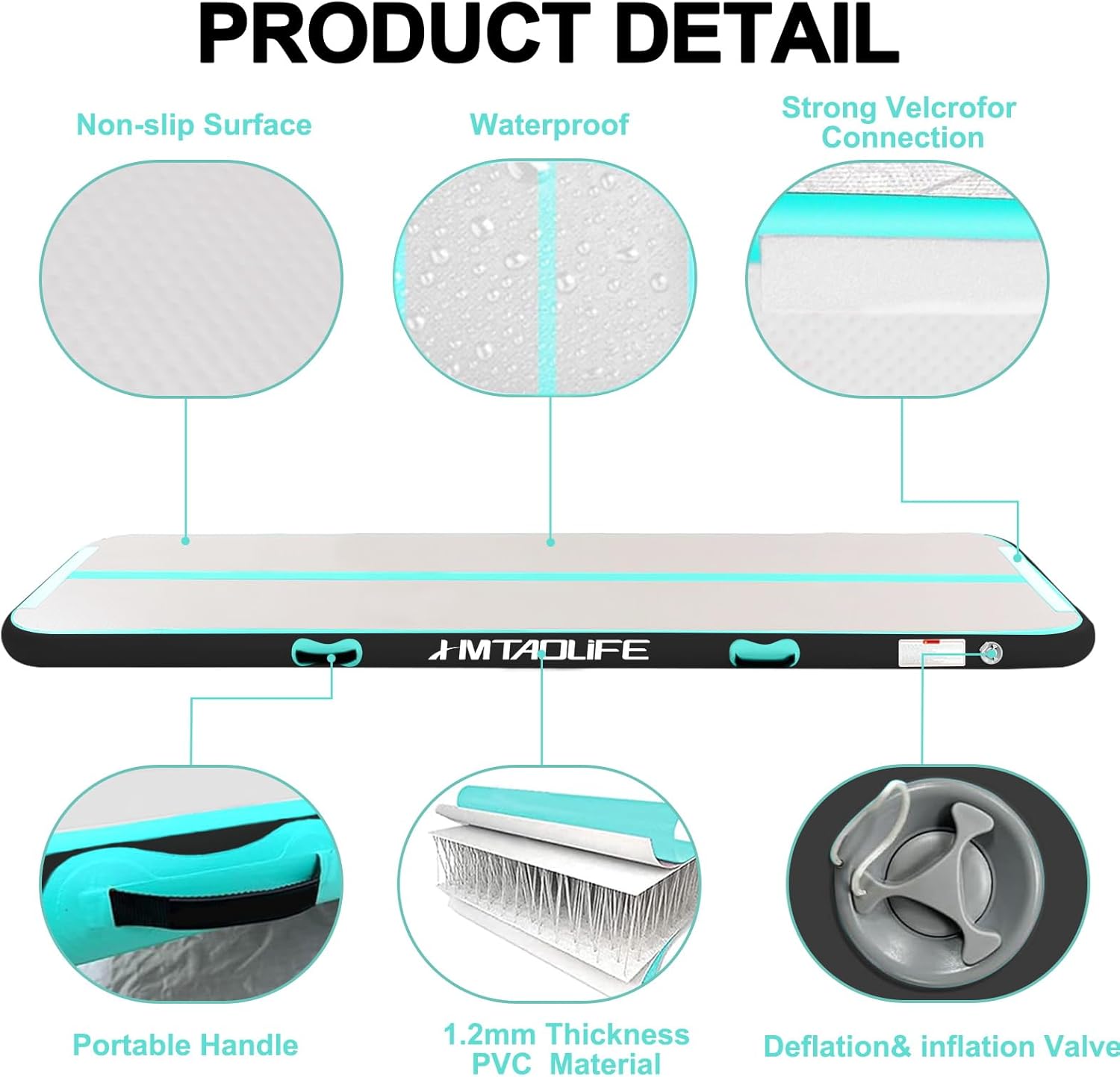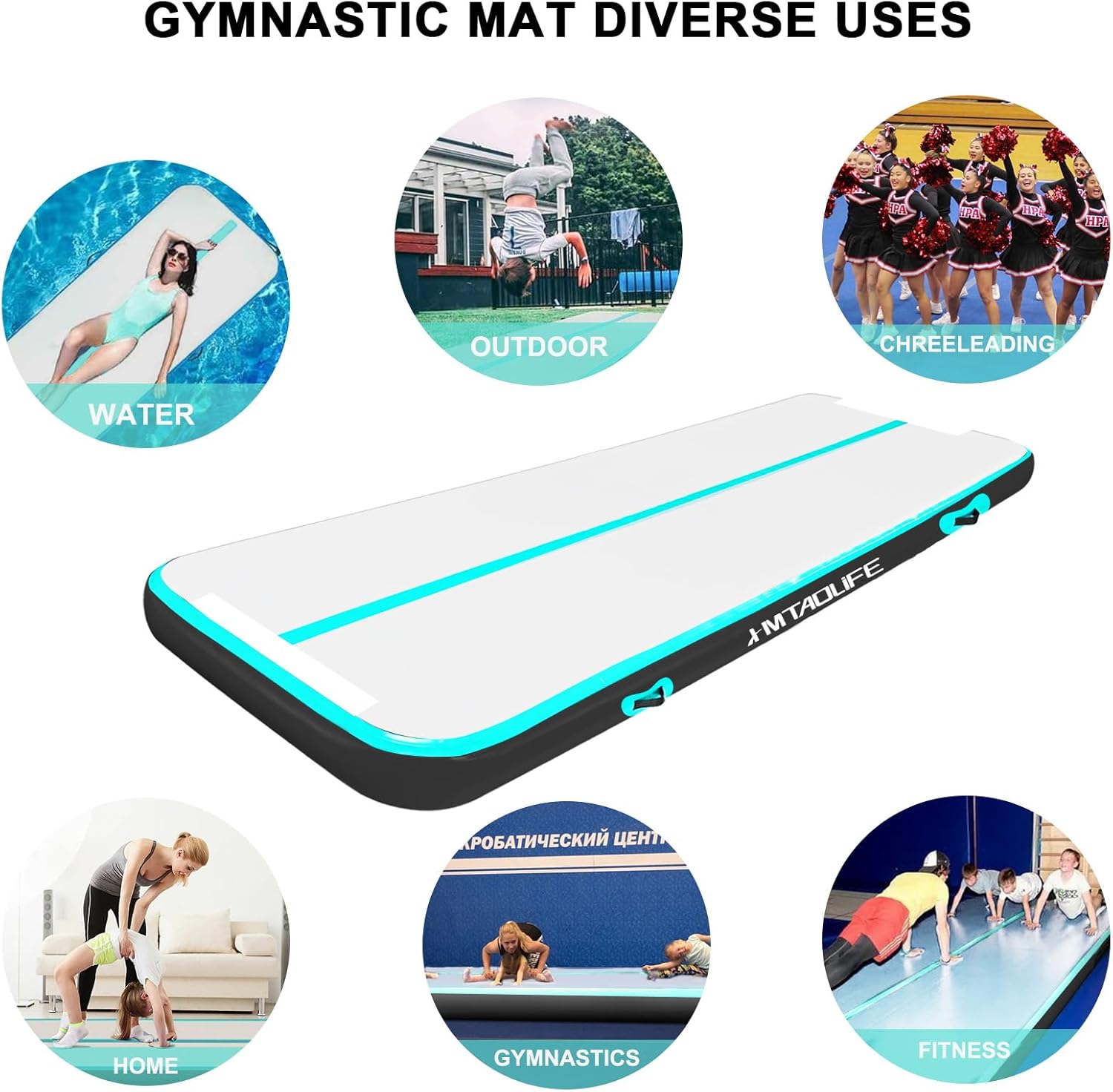 High Quality Tumble Mats:Air tumble gymnastics mat is made of PVC waterproof cloth and high quality brushed material,better air tightness and durability since reinforcement are made for all seams