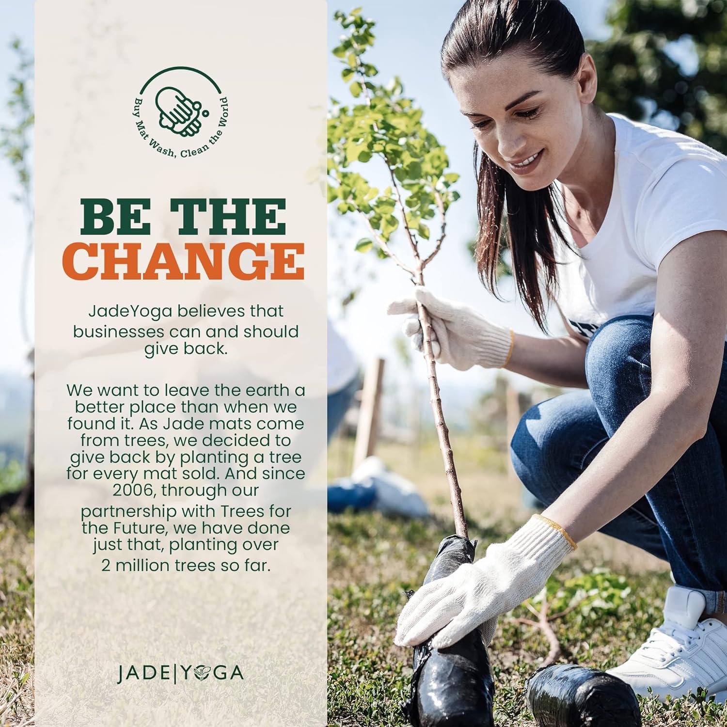 BE THE CHANGE: JadeYoga’s mission is to make the best quality yoga products and give back to the earth or community with each product sold. As Jade mats come from trees, Jade gives back by planting a tree with every mat sold – with over 2 Million trees planted so far.