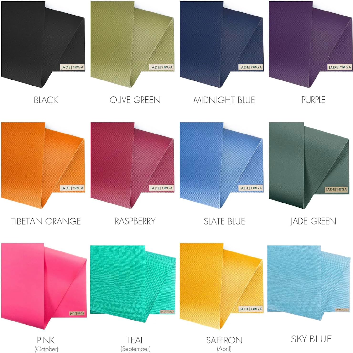 Experience superior grip and comfort with the Jade Harmony Yoga Mat. This popular mat measures 24 inches wide with a 3/16-inch thickness, providing ideal cushioning while maintaining stability for standing poses. Available in two lengths – 68 or 74 inches – and weighing approximately 5 pounds, this mat offers versatility for practitioners of different heights. The Harmony mat comes in a stunning array of colors including Purple, Midnight Blue, Olive, Black, Jade Green, Raspberry, and more. Made in the United States from natural rubber, this mat delivers exceptional traction that helps you hold poses with confidence. Through a partnership with Trees for the Future, JadeYoga plants a tree for every mat sold, with over two million trees planted to date. The 74-inch version is available in select colors including Jade Green, Black, Midnight Blue, Olive, Sky Blue, and Purple.