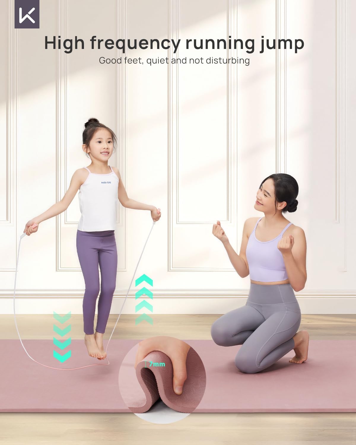 Cushioned Comfort, Safe & Quiet — Crafted with 7mm of high-density TPE material, this exercise mat offers superior cushioning that absorbs impact while maintaining a firm, supportive feel. It provides excellent shock absorption and sound insulation, making it perfect for activities like jumping rope at home without worrying about injuries or disturbing neighbors