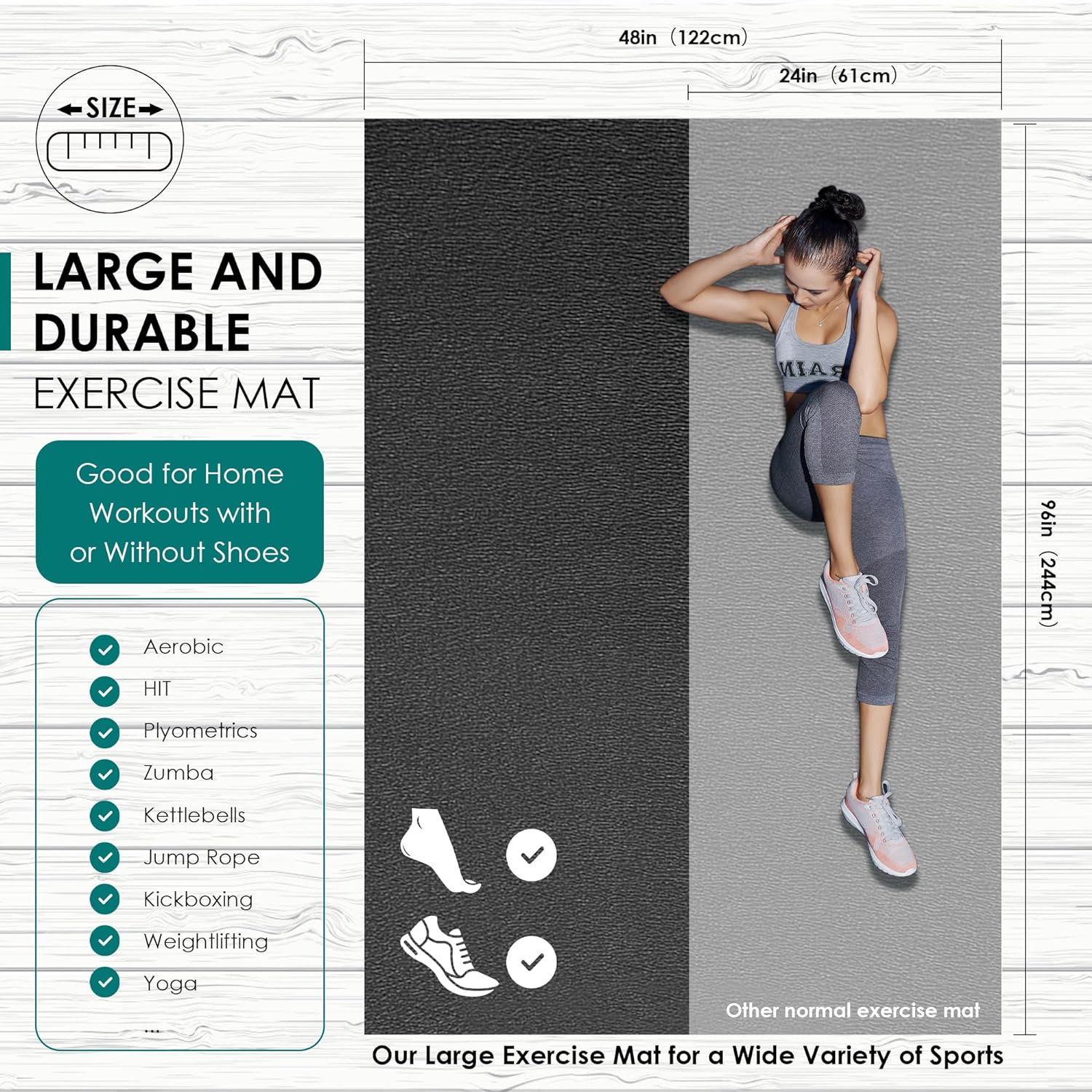 Large Exercise Mat, 8′ x 6’/8′ x 4’/6′ x 4′ Extra Durable Workout Mats for Home Gym Flooring, High-Density Gym Mats Cardio Mat for Jump Rope, MMA, Stretch, HIIT, Shoe-Friendly, Non-Slip, Non-Toxic