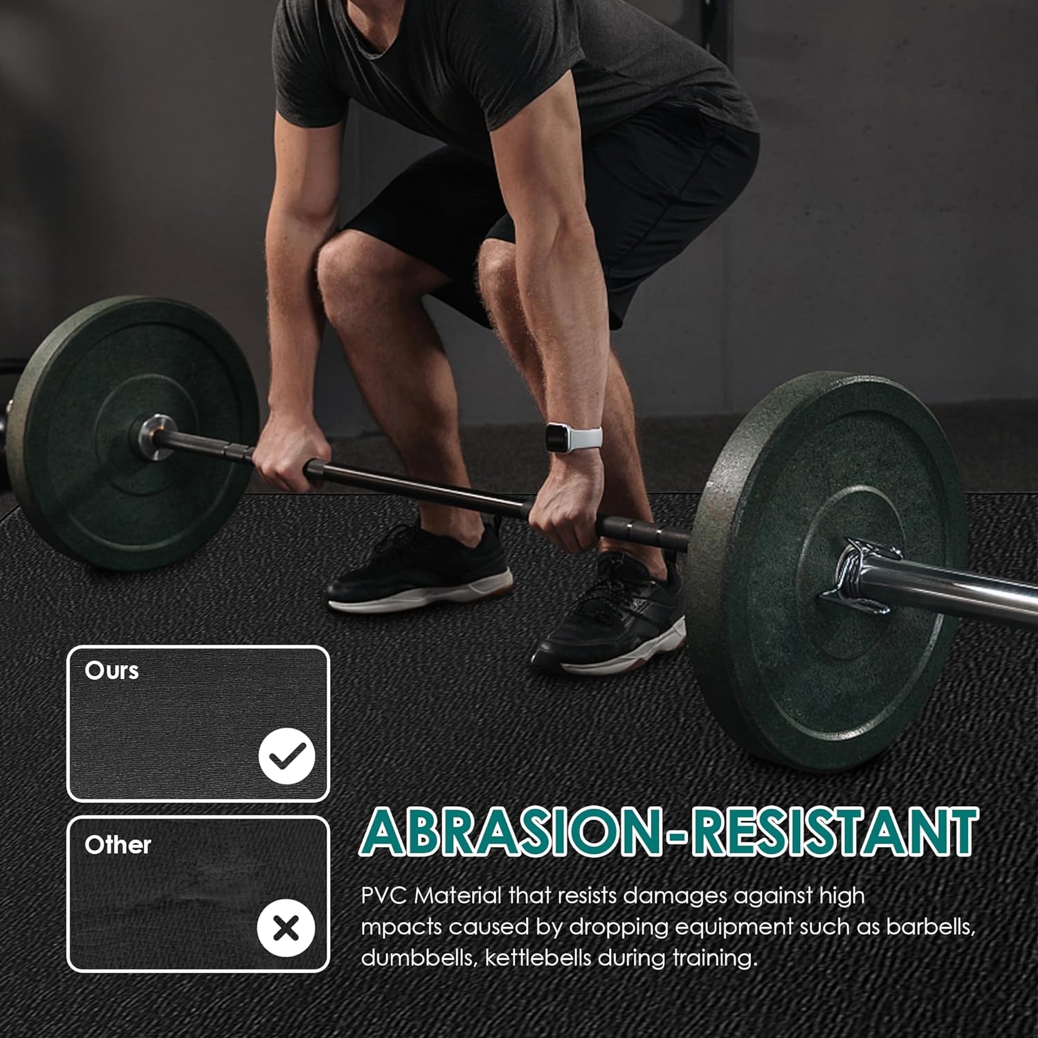 NON-SLIP AND MULTIPURPOSE: The anti-slip surface keeps the gym floor mat staying put to provide stability on hard or carpet floors; the shoe-friendly surface allows you to work out with or without shoes on the home gym mat. And this workout mat is waterproof and easy to clean and store. It has a wide range of uses, not only for exercise, but also for storing fitness equipment (equipment mats), or for children’s game mats and carpets.