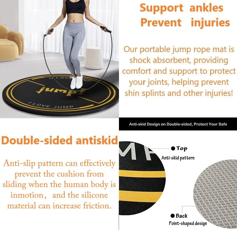 CUSTOM ROUND SHAPE: The diameter of this round jump rope mat is 125 cm (4 feet), which allows you to do all kinds of fitness, such as skipping rope, aerobics,yoga,etc.