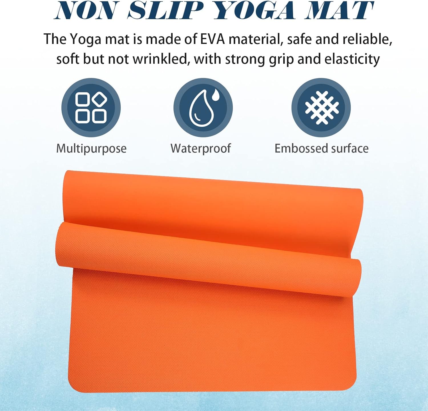 Reliable Material: the upgraded latex free yoga mat is made with friendly EVA material; This non slip EVA yoga mat is non toxic and friendly to your skin