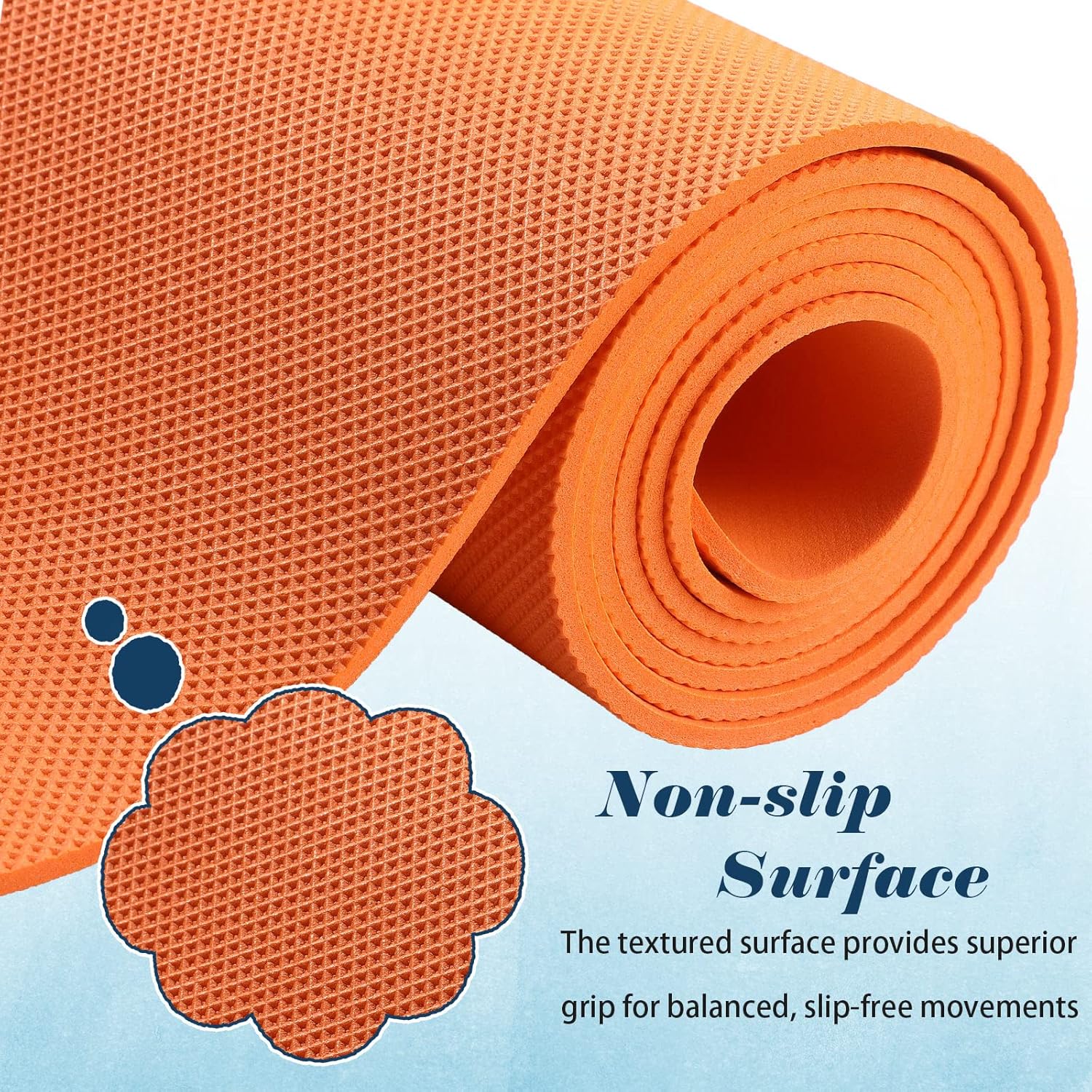 Anti Slip Design: the bulk yoga mats are featured with embossed pattern, with a good stretch and grip, not easy to slip on the floor but easy to clean with wet cloth; The anti slip texture ensures ideal grip to help you keep balance even when you wear socks, suitable to practice many forms of yoga; Non slip on wood floor, tile floor, cement floor