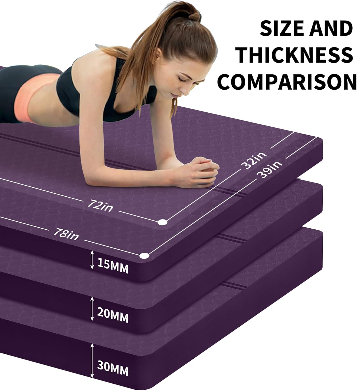🌹EXTRA LONG EXTRA WIDE: nuveti’s 72″x32″/78″x36″ offers adequate space to fit any type of exercise like yoga, pilates, bikram, and fitness exercise.Most yoga mats on the market are 6mm, 8mm or even thinner. This yoga mat is thickened to 15mm,20mm,30mm which can provide more support and protection for your ankle, knees, joints, and body on hard floors, as well as absorbs vibration and reduces noise.