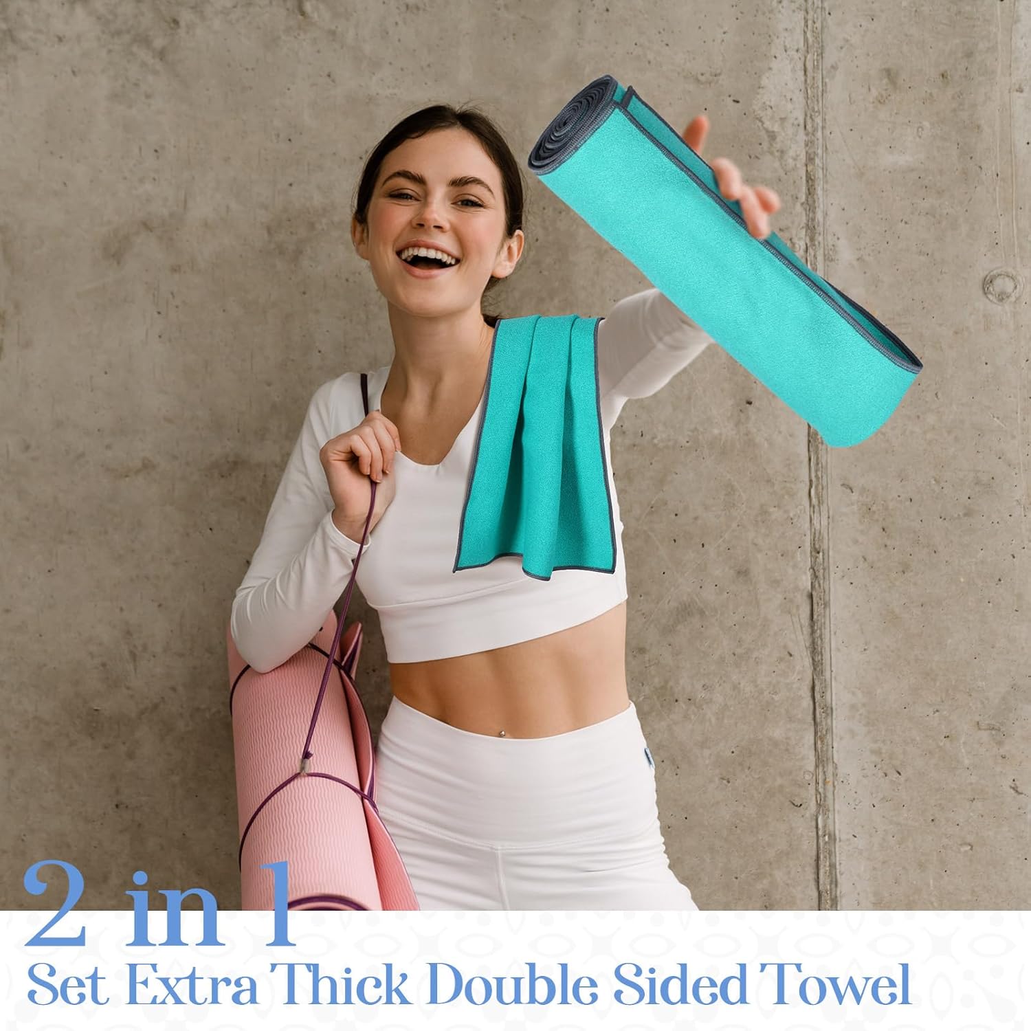 Peryiter 12 Pack Yoga Towel for Hot Yoga, Non Slip 2 in 1 Set Extra Thick Pilates Mat Towel Double Sided Microfiber Super Absorbent and Sweat Blankets for Workout Gym Fitness Men Women