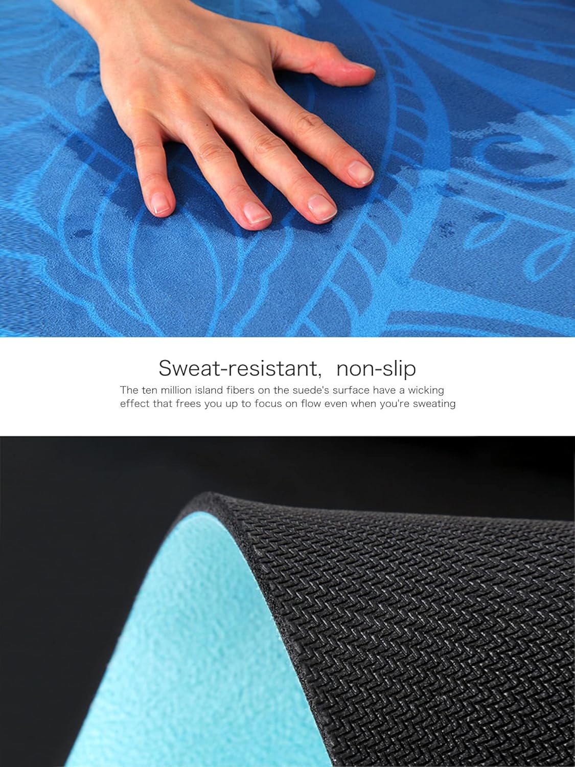 Double Sides Non-slip: Faux suede surface can absorb sweat or water instantly. And since the bottom of the mat is made of natural rubber, it is slip resistant and easy to carry. Non slip on wood floor, tile floor, cement floor. The double-sided sticky non-slip texture of the mat provides excellent traction and superior grip, best suitable to practice many forms of yoga.