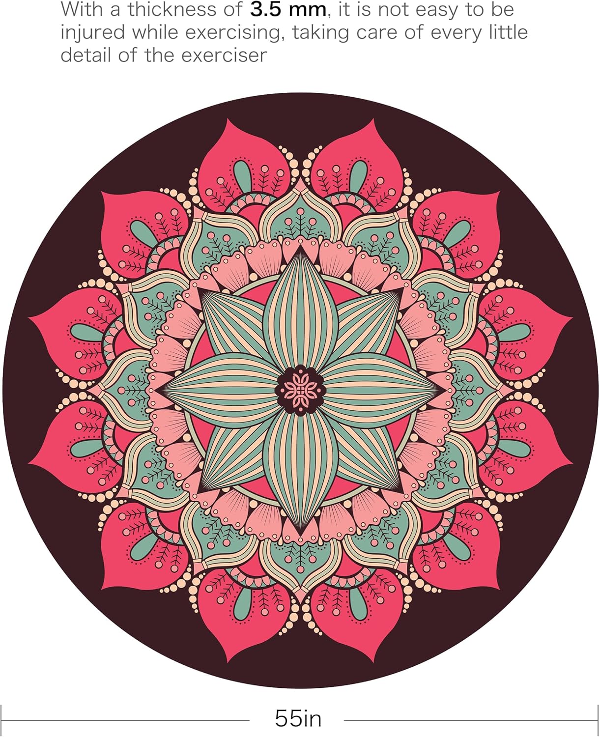 Extra Size: diameter 55″ (140cm), our extra large round mat provide ultra comfort and support, you can enjoy your meditation or yoga freely and no worry about the limited of the traditional mat size. 3.5mm thick, it’s perfect support your ankles in the practice, relieves achy joints and sore ligaments during your exercise.