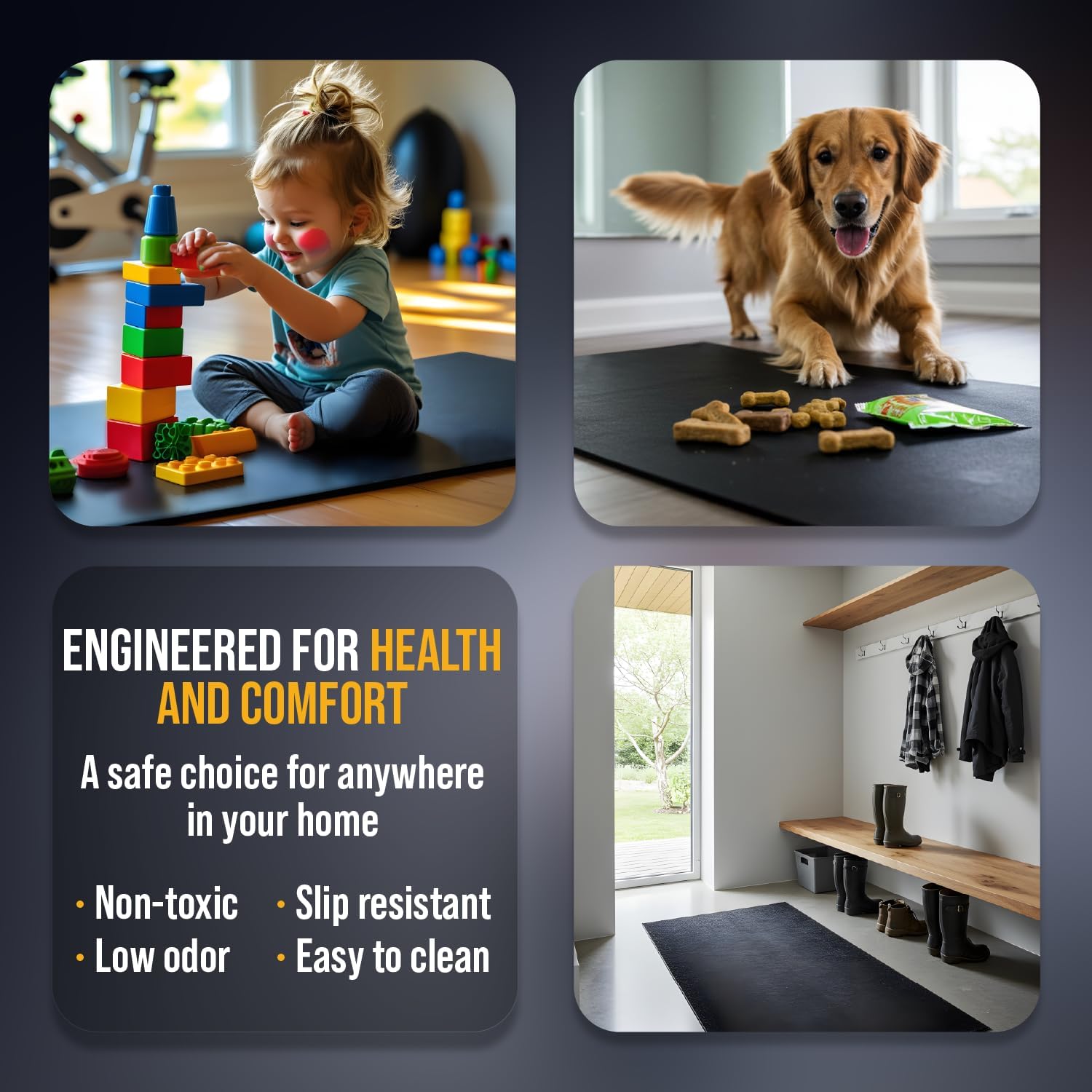 Low OdorNon-ToxicAnti-SlipWater ResistantSustainable
