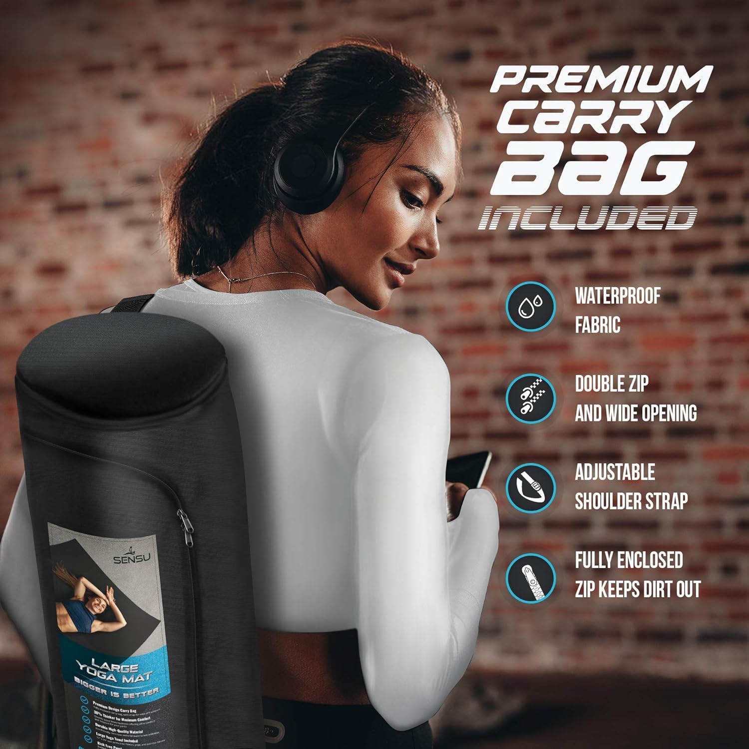 Sensu Large Yoga Mat – 6′ x 4′ x 9mm Extra Thick Yoga Mat for Men and Women – Non-Slip Surface for Extra Grip – Ideal for Hot Yoga, Pilates, Grounding and Meditation at Home or in Studios