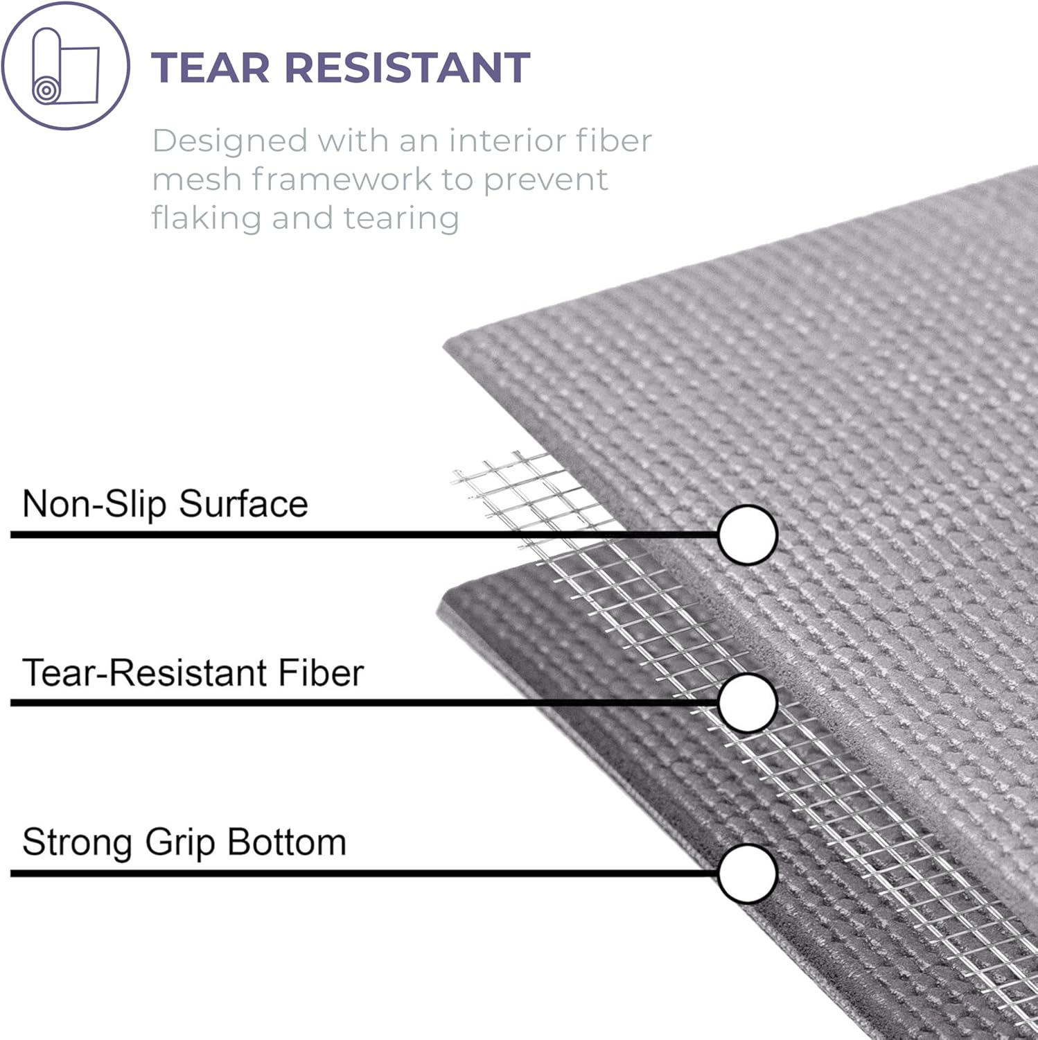 Non-Slip: The fitness mat features a textured surface for stability and balance when changing or maintaining poses; created with an interior fiber mesh layer to reduce mat stretch and resist tears for longevity