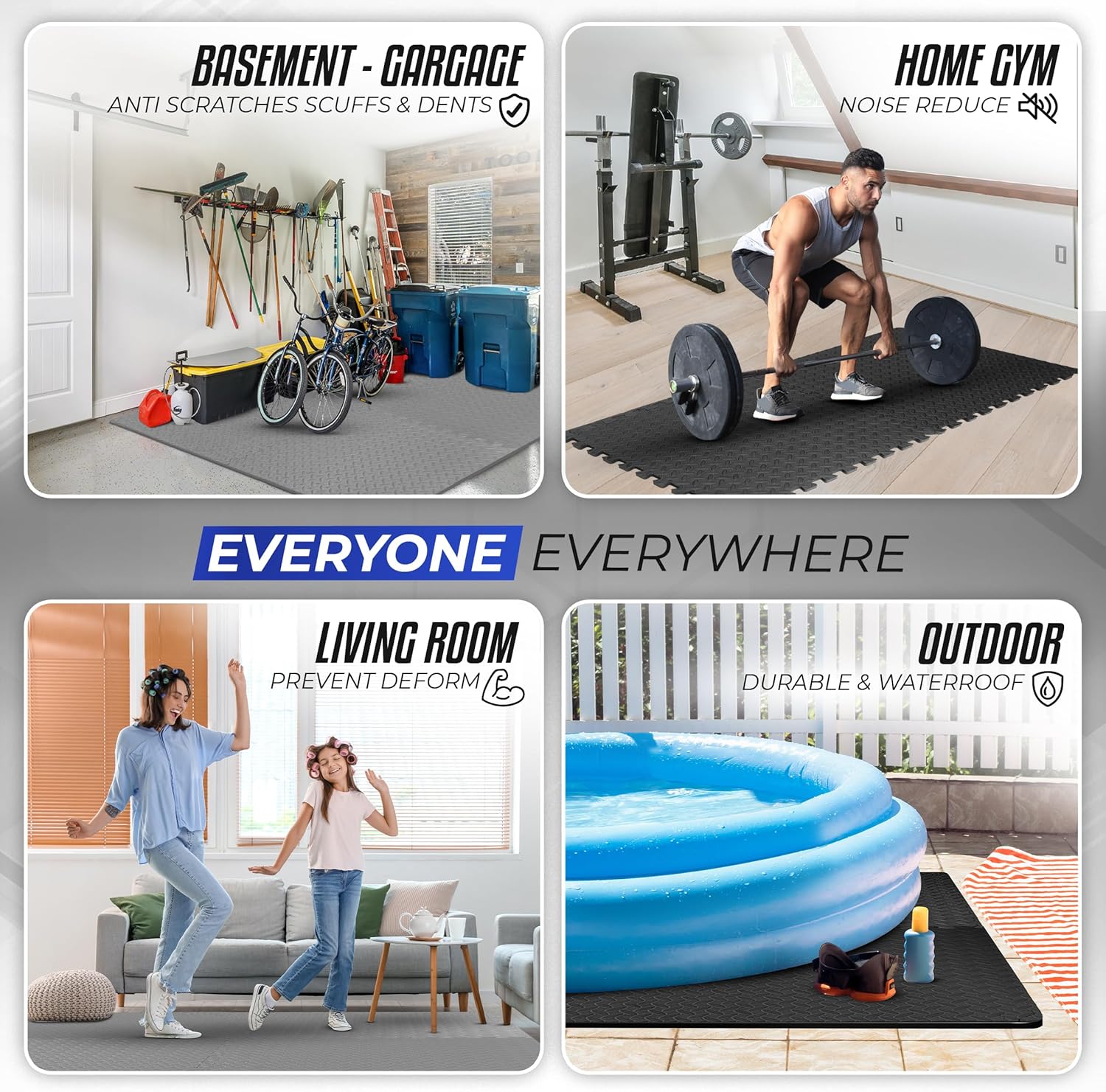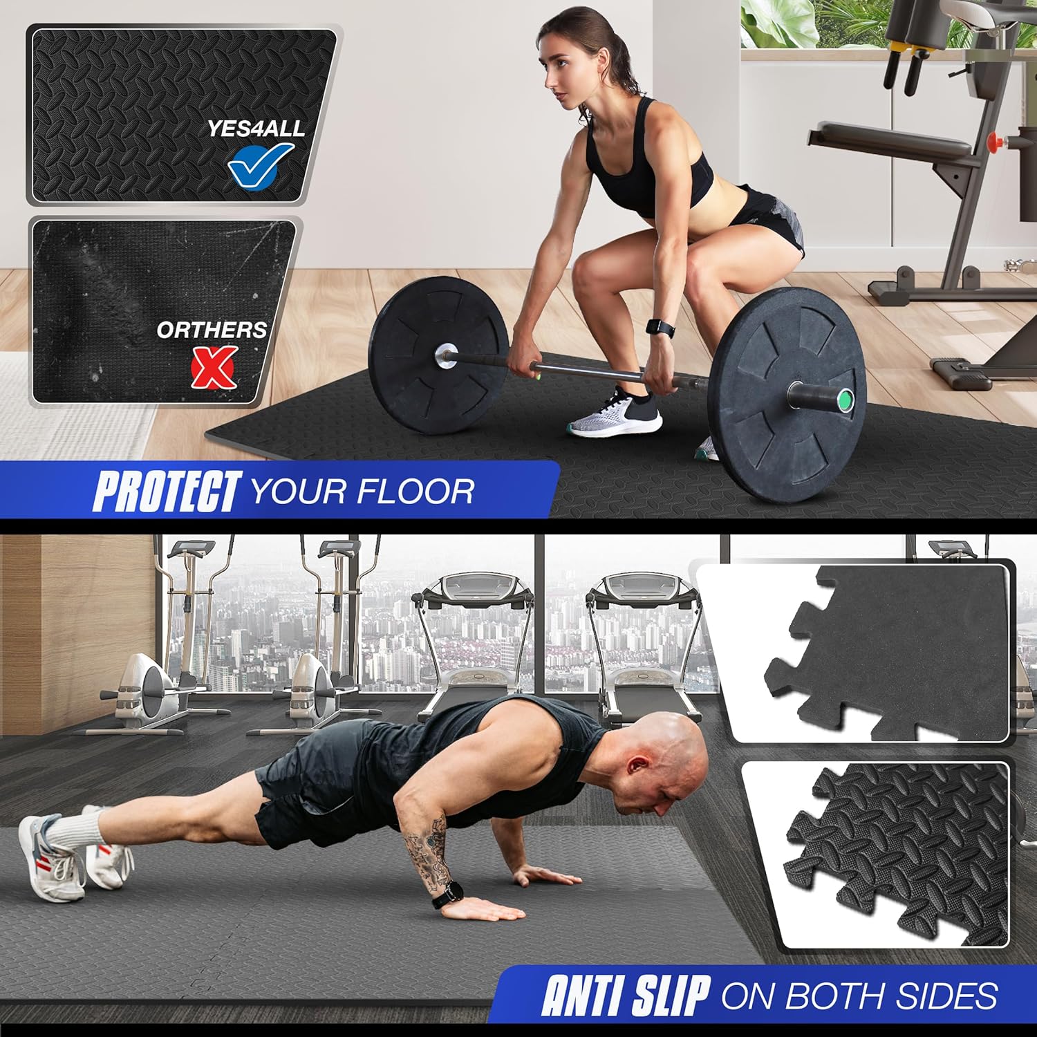 PROTECTIVE WORKOUT FLOORING: Experience shock-absorbing comfort whether doing Yoga, Pilates, MMA, or weightlifting. Yes4All workout floor tiles can also be used to create a pleasant and anti-slip surface while camping or playing