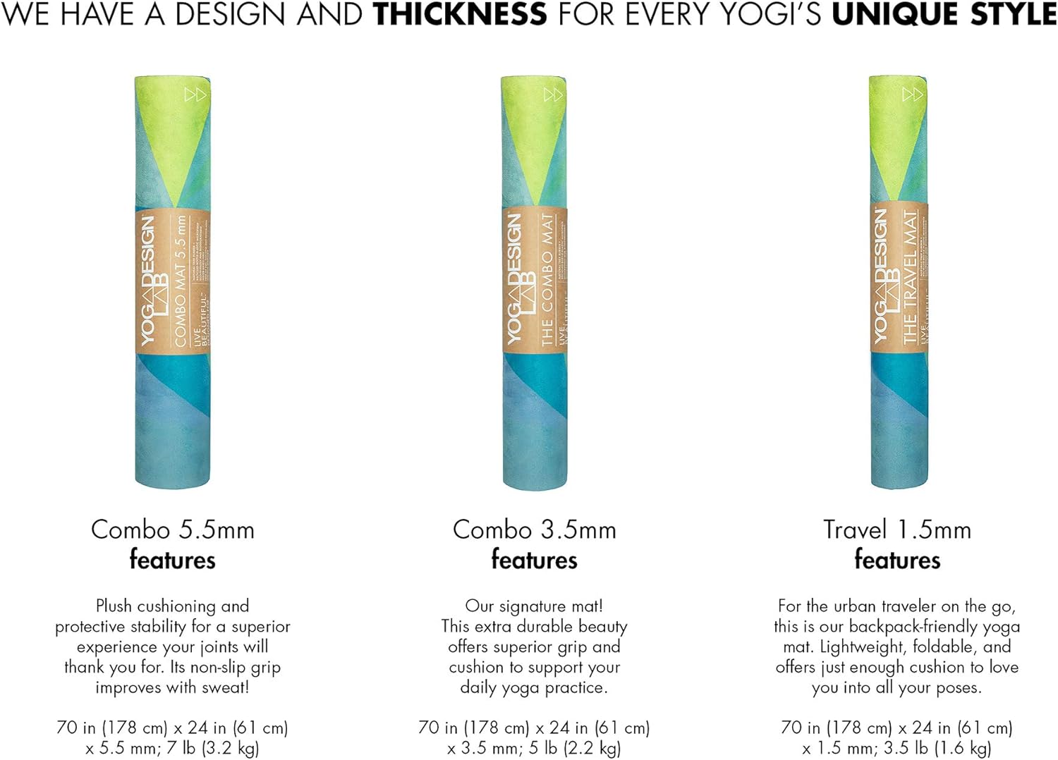 YOGA DESIGN LAB | Travel Yoga Mat | 2-in-1 Mat+Towel | Lightweight, Foldable, Eco Luxury | Ideal for Hot Yoga, Bikram, Pilates, Barre, Sweat | 1.5mm Thick | Includes Carrying Strap!