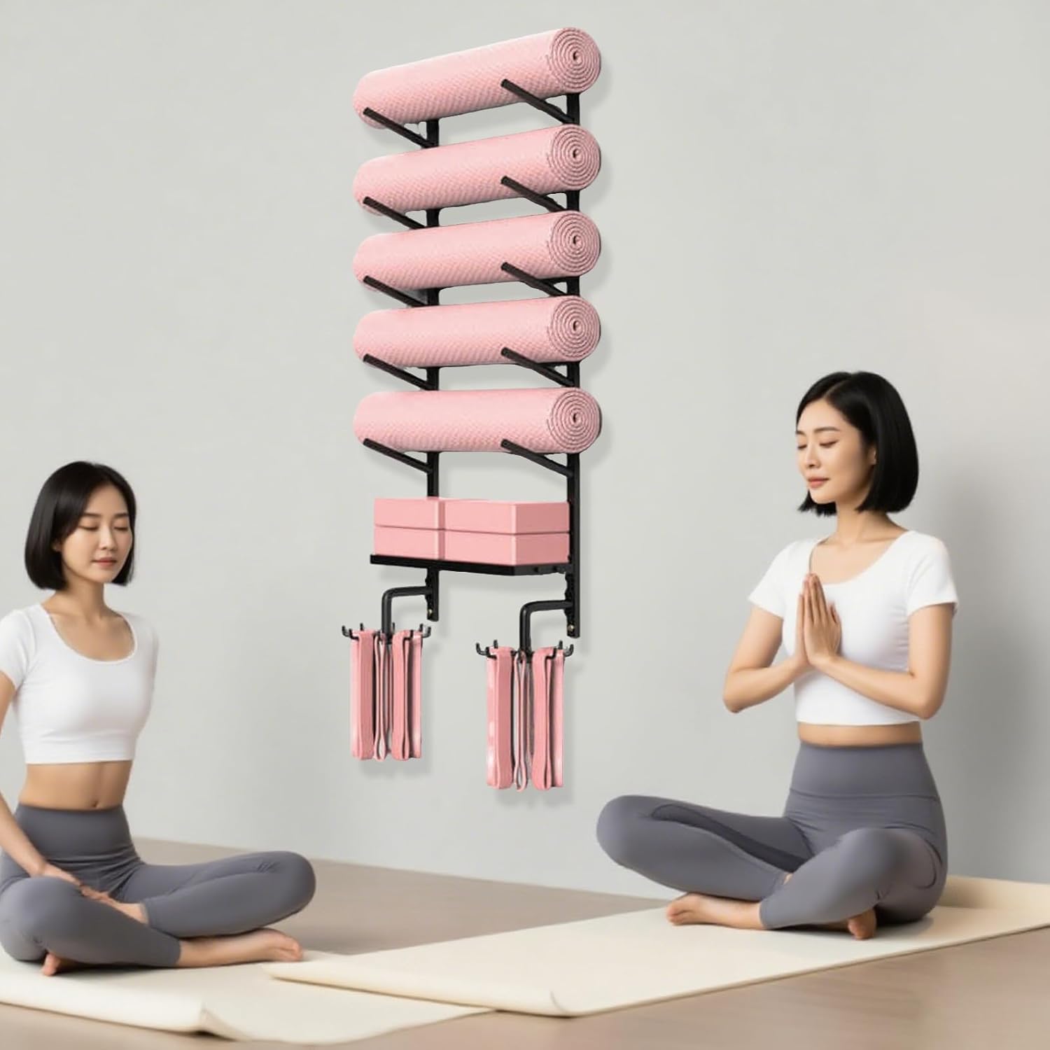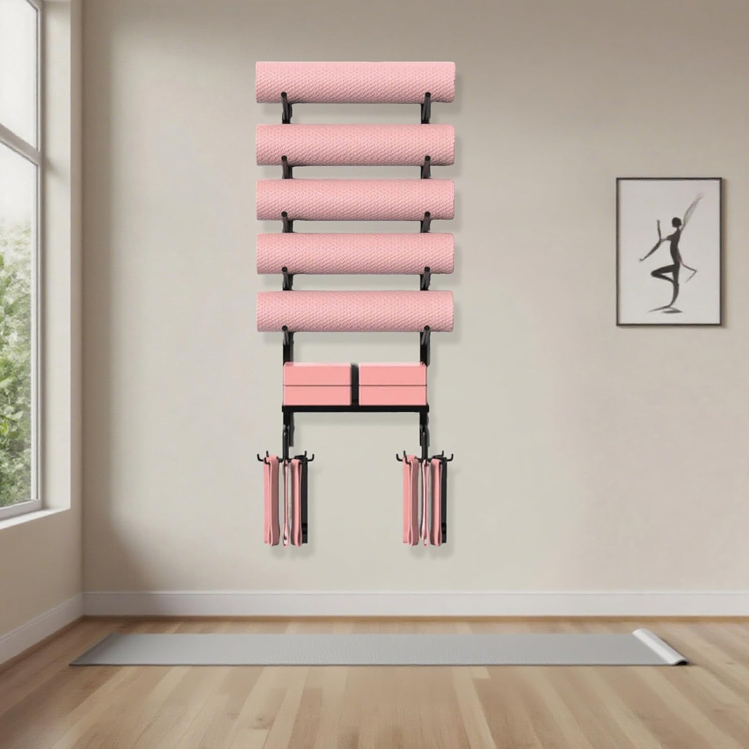 Durable and Long-Lasting: Yoga mat holder rack is made of high-quality iron, it offers a sturdy structure and strong load-bearing capacity. The premium black paint finish ensures a lasting look and blends effortlessly into any modern or industrial style, creating a low-key and versatile look