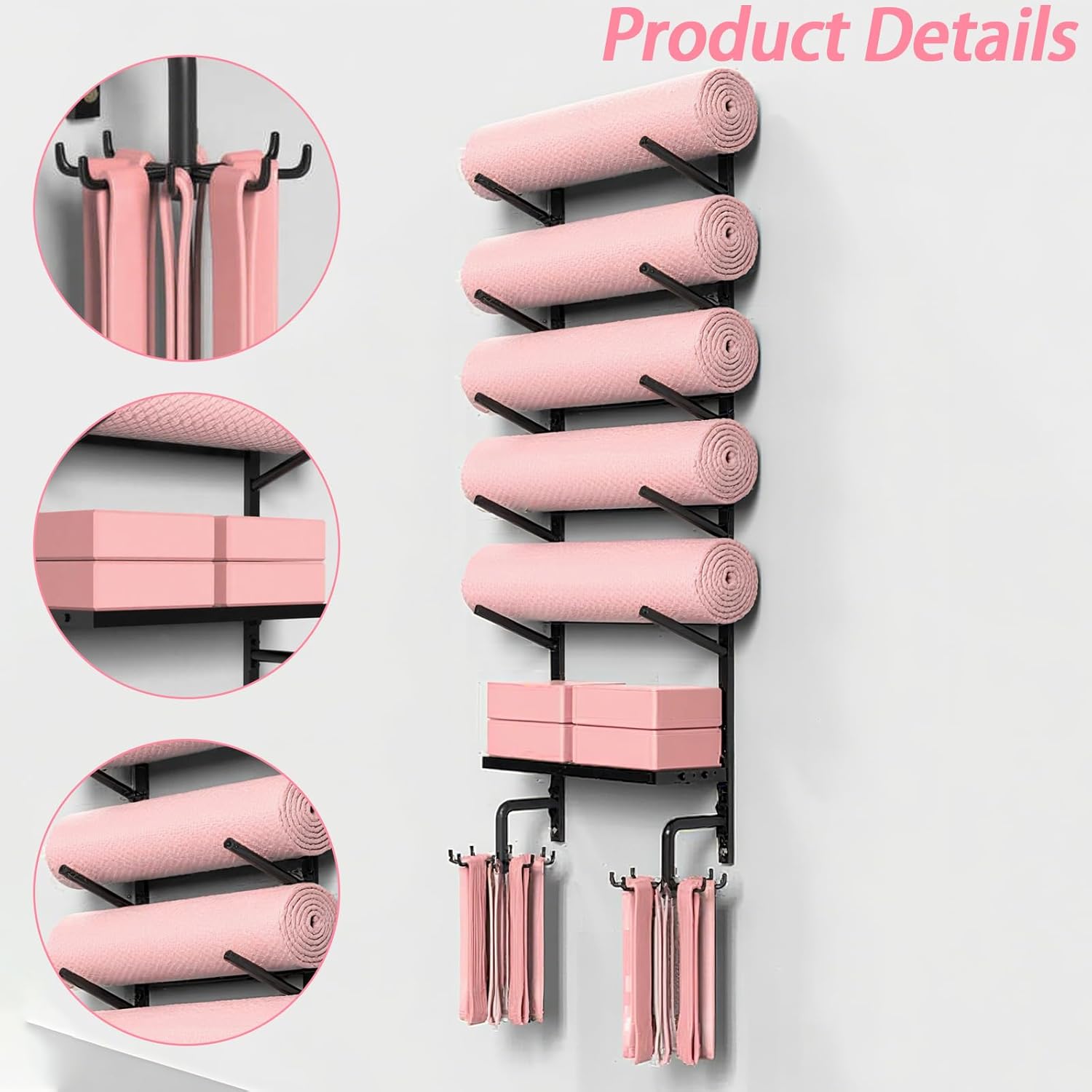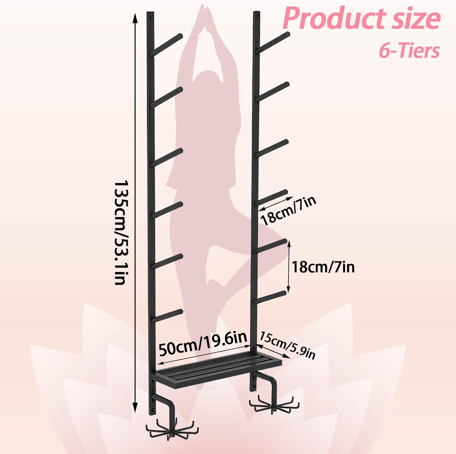 Innovative Multi-Layer Combination + Practical Base Hanger: This gym storage organizer adopts a multi-layer structure. Easily accommodates multiple standard yoga mats or other large equipment. The tray provides ample storage for towels, blocks, and more, while the sturdy bottom hanger provides an additional hanging point, perfect for storing jump ropes, resistance bands, keys, or small bags, offering even more flexible storage