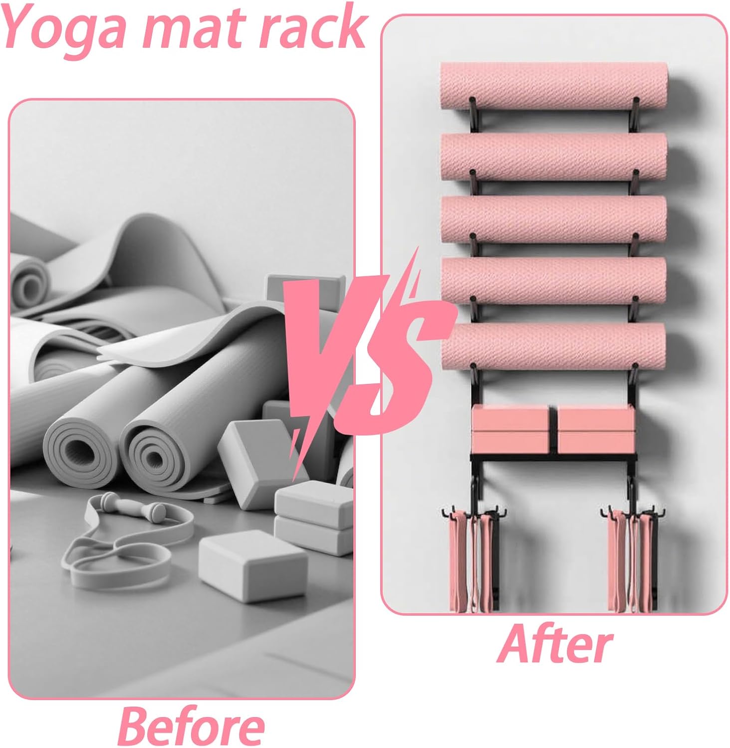 Versatile and adaptable to a wide range of scenarios: This hanging mat rack is more than just a home for yoga mats! Its flexible design is suitable for storing a variety of items: yoga mats, surfboards, skateboards, snowboards, long-handled umbrellas, and more. It is an ideal storage solution for your home entryway, living room, bedroom, balcony, gym, yoga studio, garage, or storage room