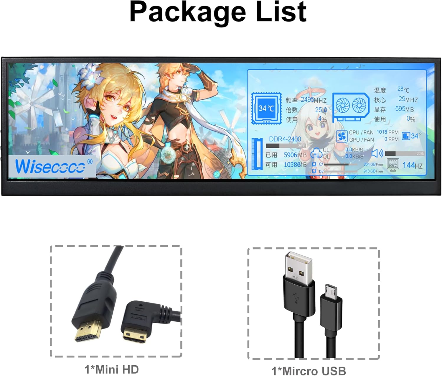 Stretched Bar LCD Display with casing1920x515 high resolutionReal IPS technology178°full viewing anglePlug and Play, Drive-Free,Using as a PC CPU GPU RAM Data Monitor or PC secondary monitor, Aida64 CPU GPU Monitoring.