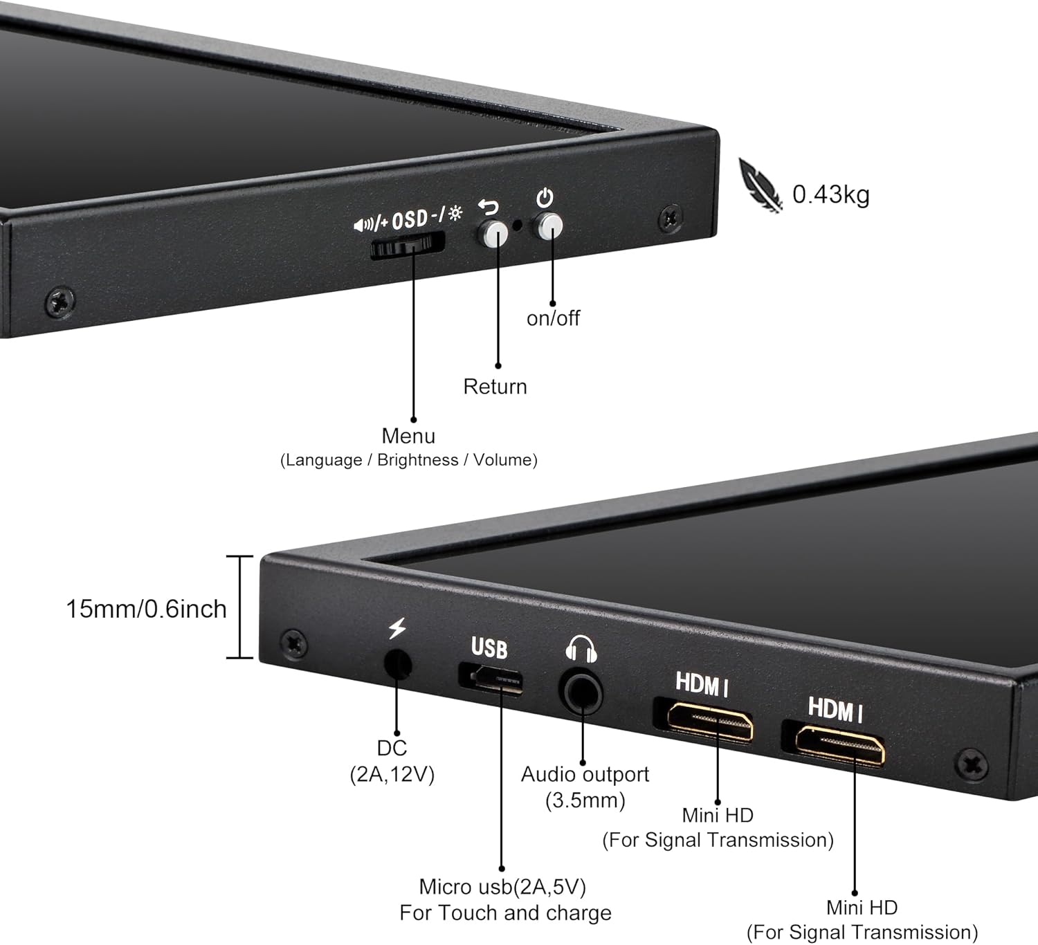 【Easy to use 】Plug and Play Portable,No driver needed.This monitor has four screw holes behind it, the spacing of the screw holes conforms to international standards, making it convenient for you to install this portable display wherever you want.