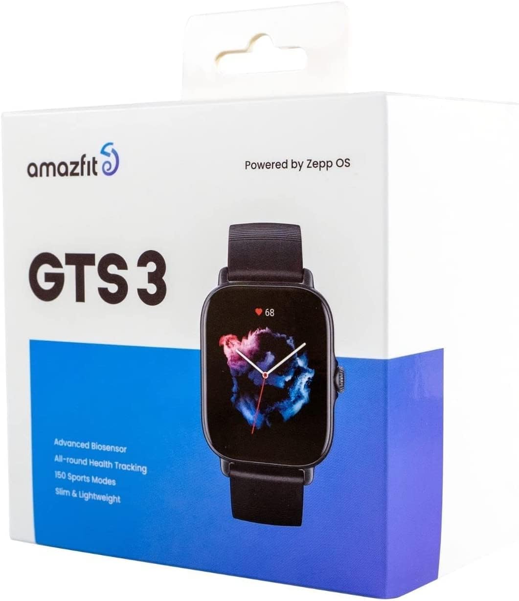 Amazfit GTS 3 Smart Watch 42mm for Android iPhone, Alexa Built-In, GPS, 12-Day Battery Life, Fitness Sports Watch with 150 Sports Modes, AMOLED Display, Sleep Heart Rate Health Tracker, Black