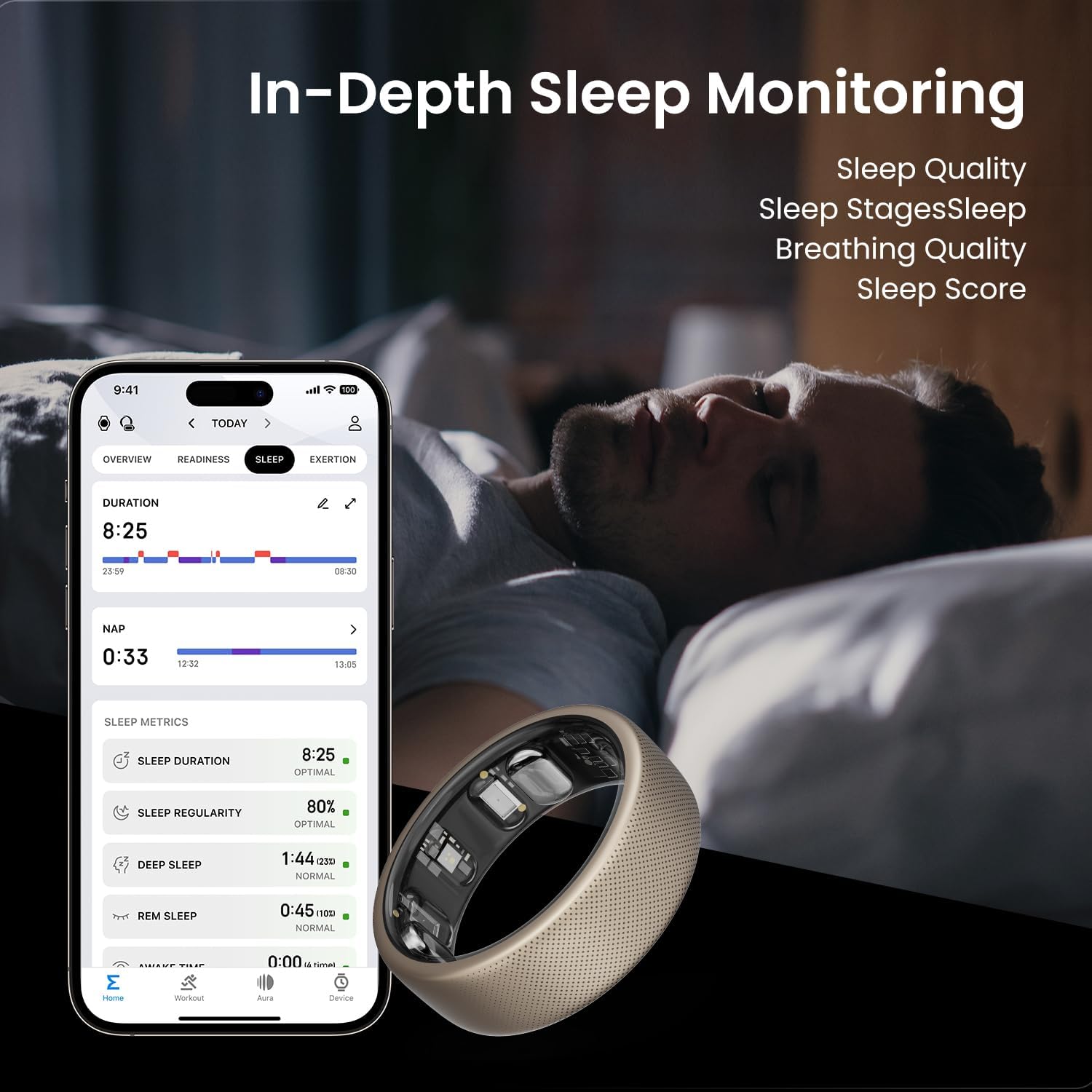 ALL-INCLUSIVE, NO FEES: Enjoy full health assessments with the aura ring, personalized sleep music, and fitness reports without subscriptions, for complete wellness support