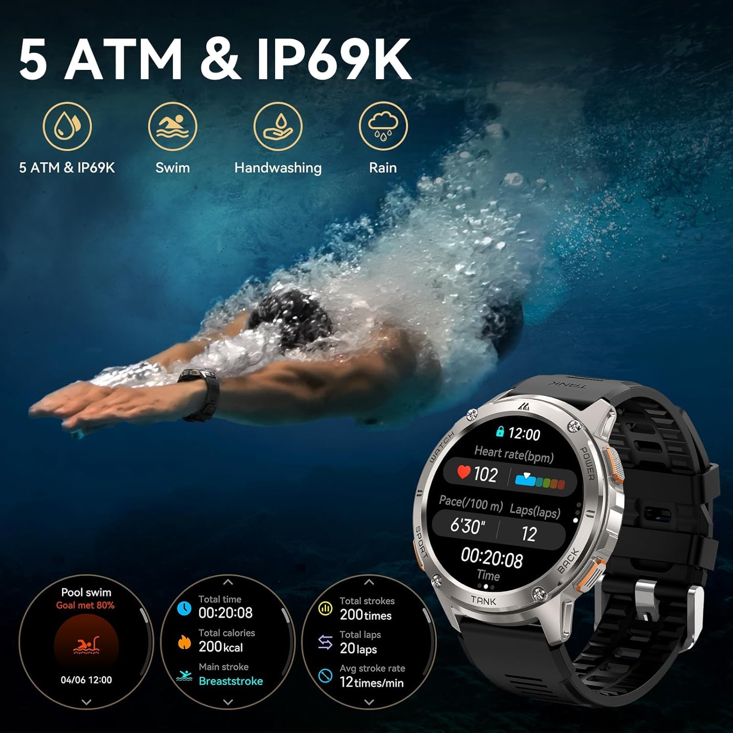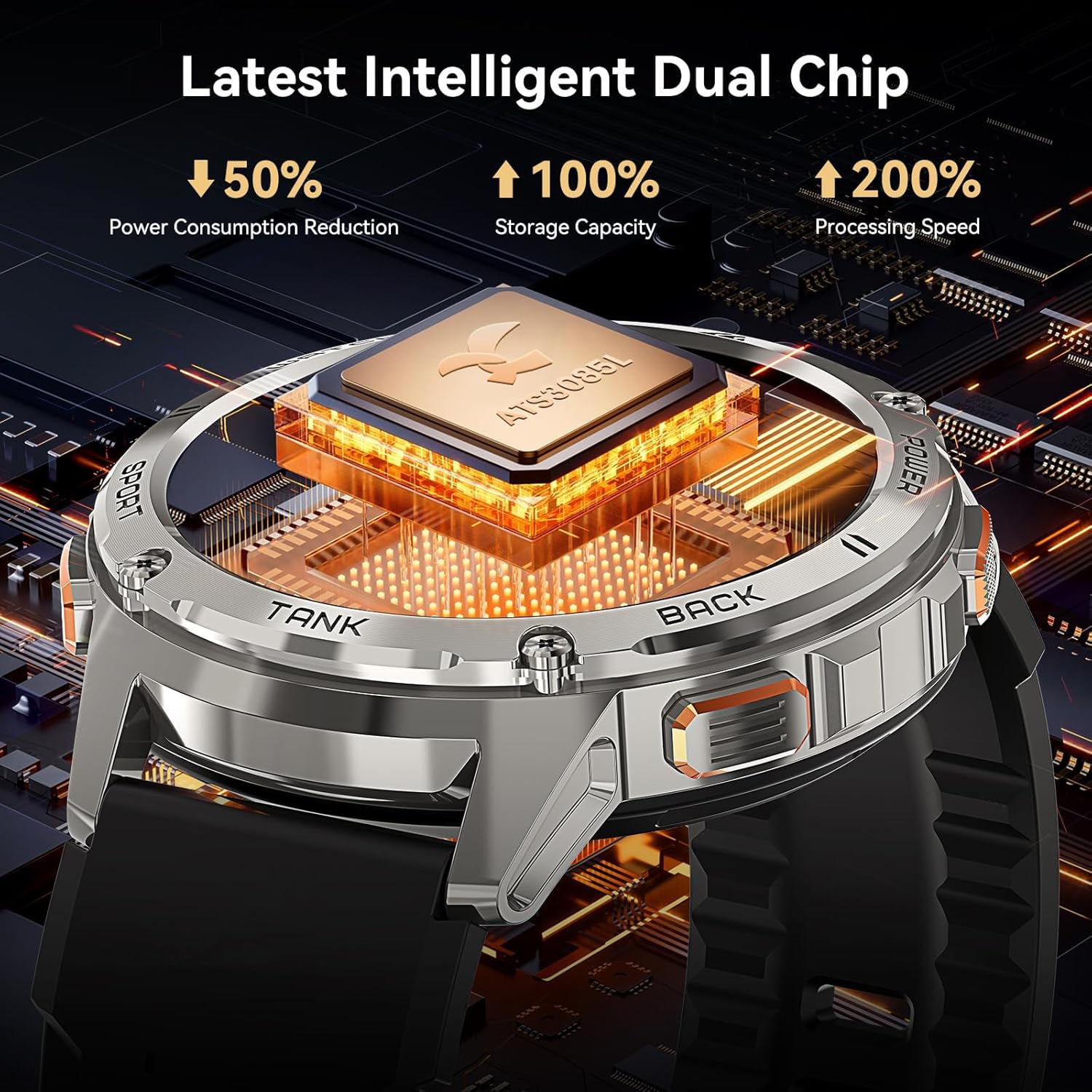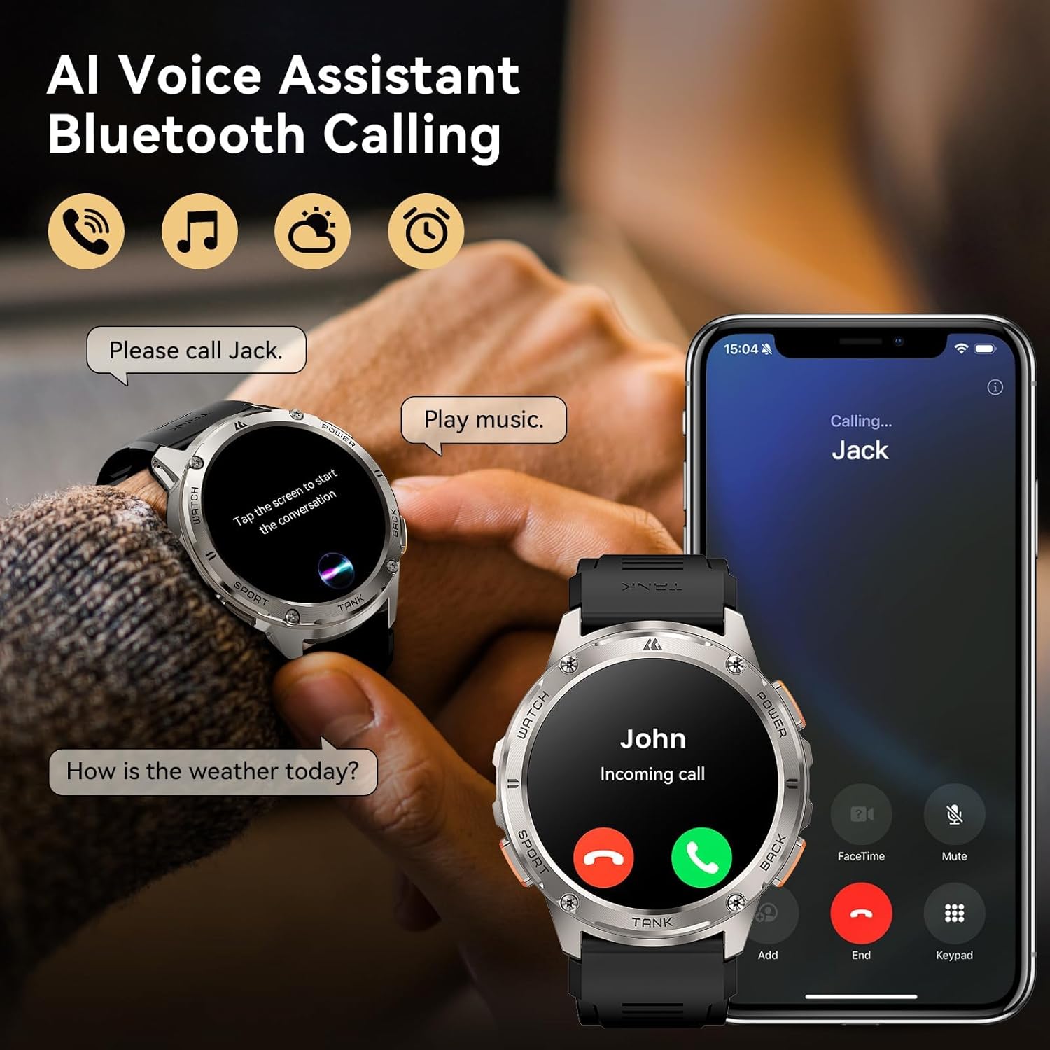 AMAZTIM Smart Watches for Men,60 Days Extra-Long Battery, Rugged Military Bluetooth Call(Answer/Dial Calls),1.43″ Ultra HD AMOLED Display,Full Metal Body SmartWatch Compatible iPhone and Android