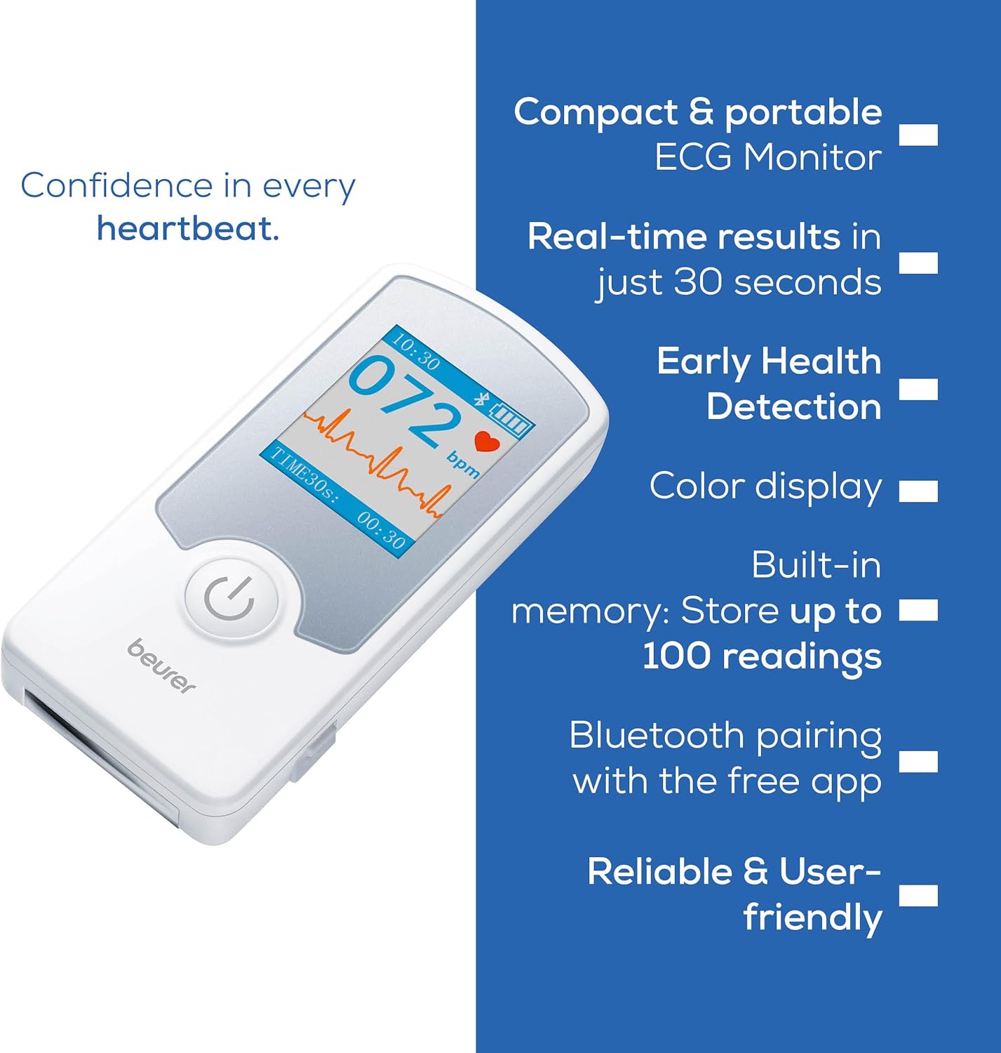 Beurer Cardio Companion EKG Monitor – 3-Lead Portable ECG Machine, Detects Irregular Heart Rhythms, Fast Results in 30 Seconds, Bluetooth with App, Rechargeable Battery, FSA/HSA Eligible, ME75